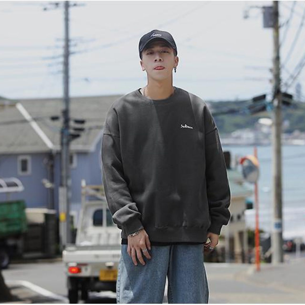 卫衣男休闲圆领套头百搭宽松韩版潮流纯色长袖ins秋冬季港风潮牌