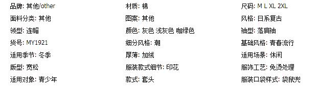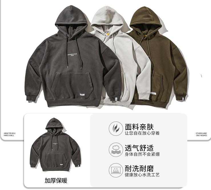 秋冬季连帽加绒加厚卫衣男宽松潮流百搭帽衫ins港风情侣休闲外套