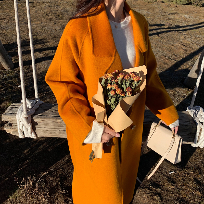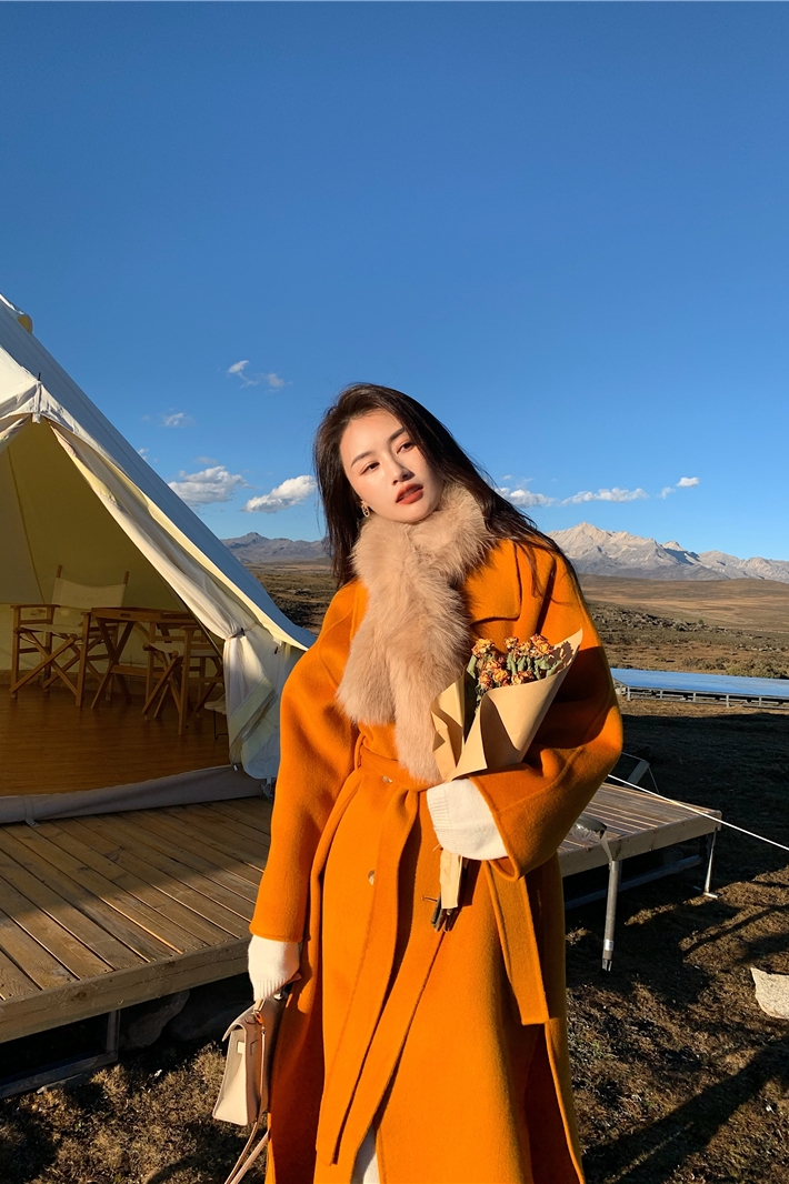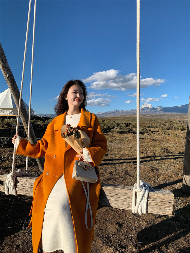 秋冬韩版双面羊绒大衣女新款双面呢大衣中长款高端毛呢外套冬加厚
