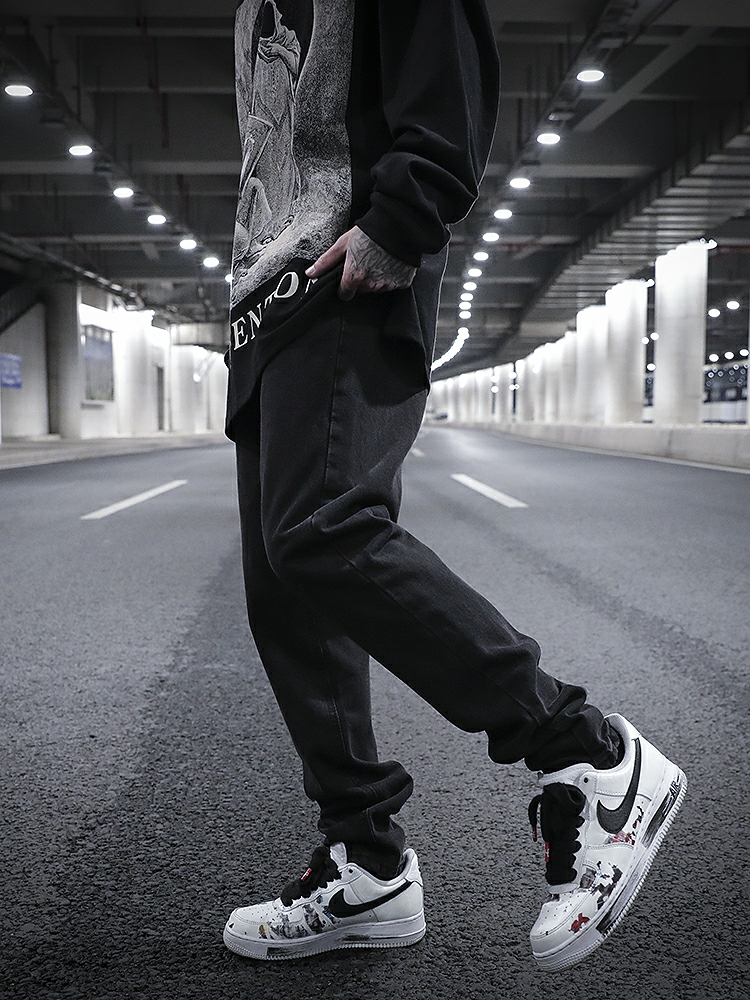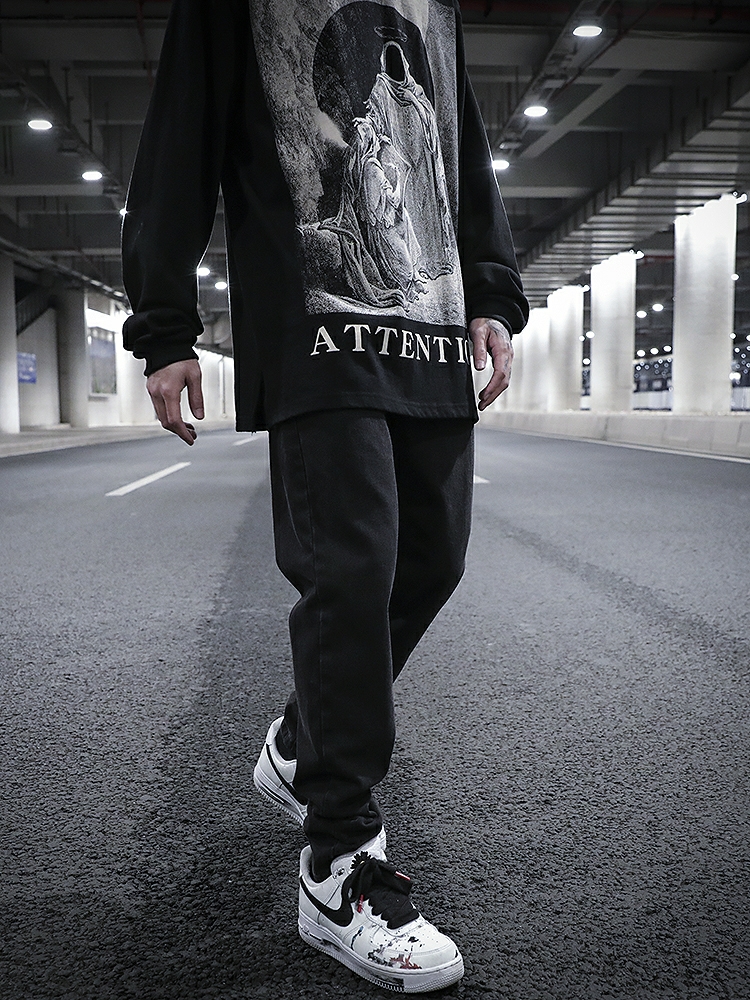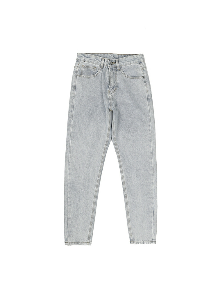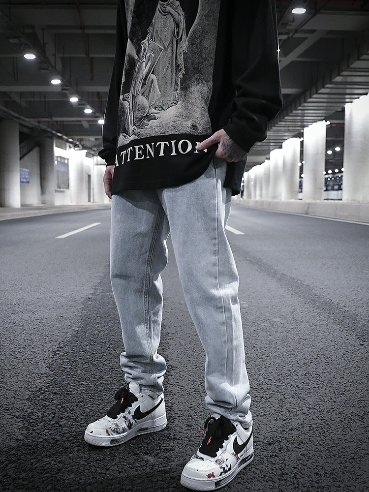 水洗做旧直筒牛仔裤