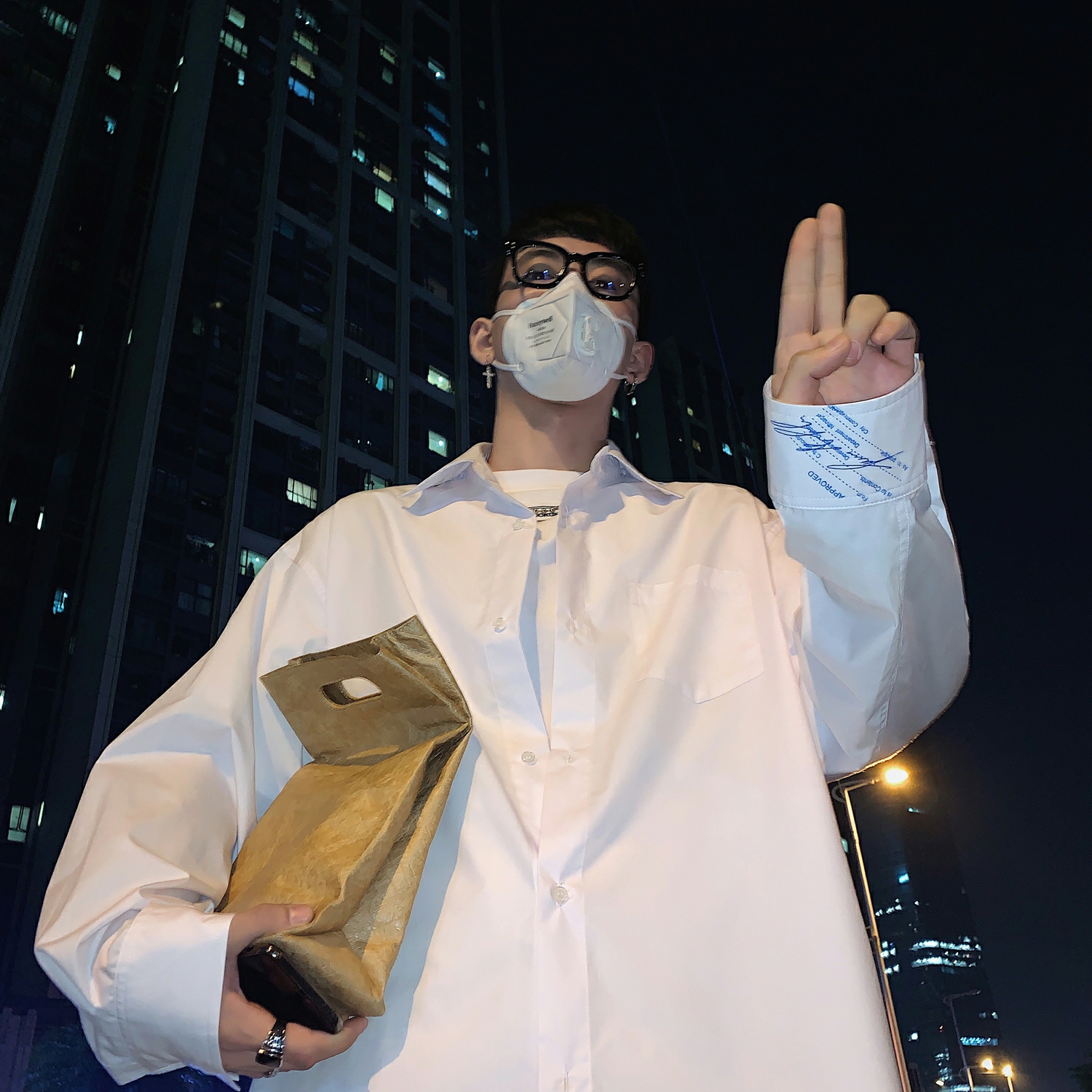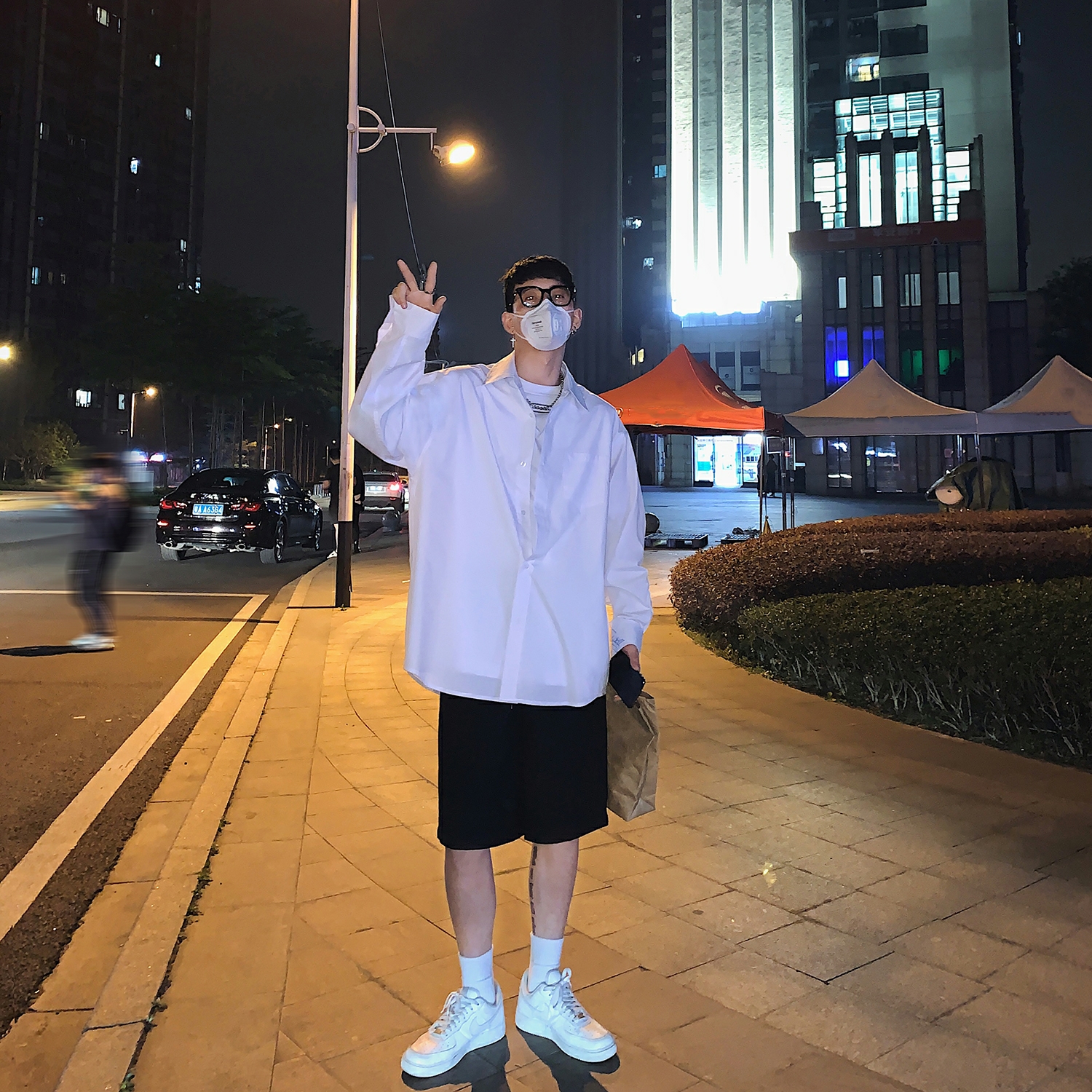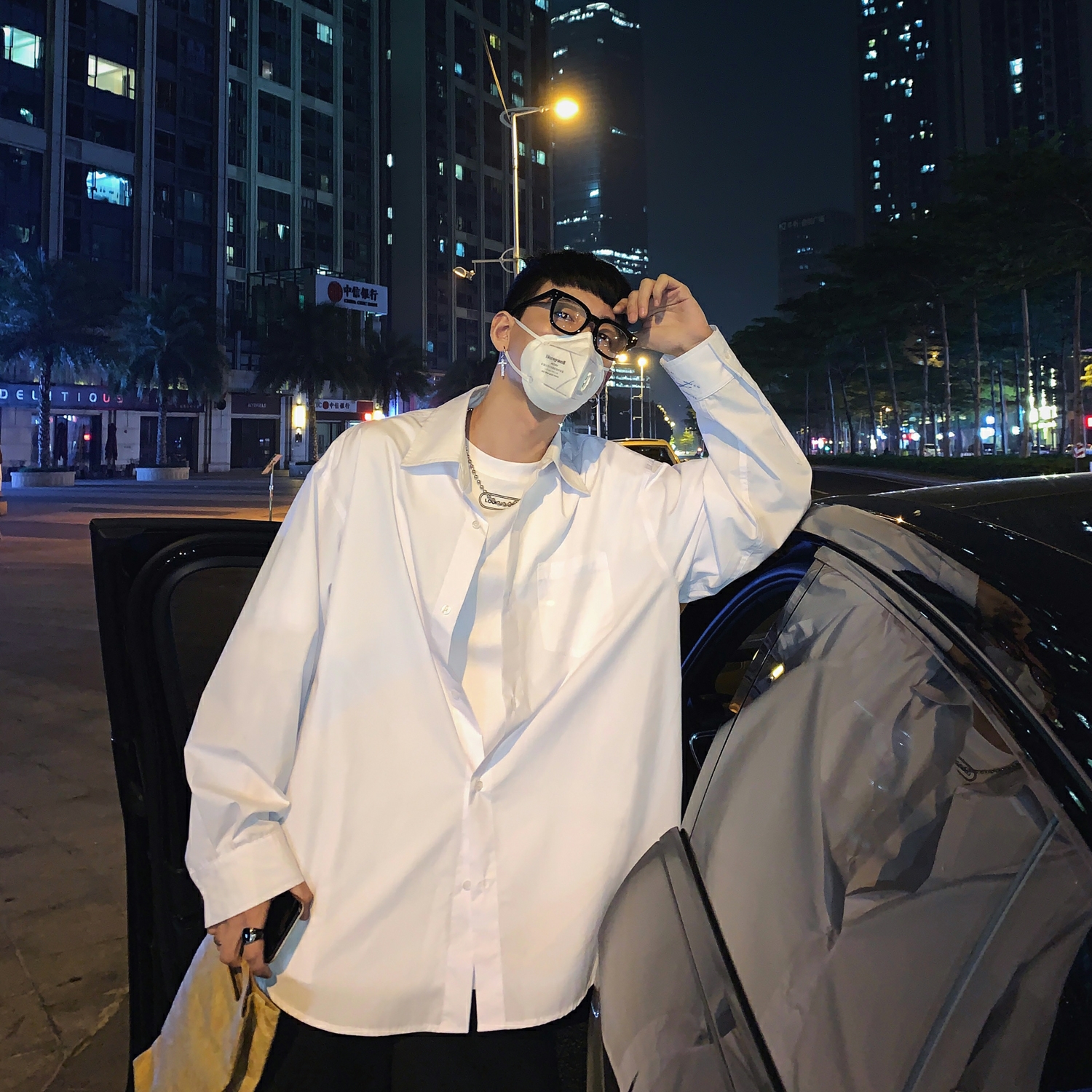 男生干净宽松衬衣白色衬衫