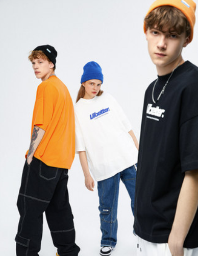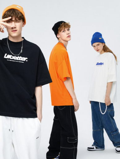 短袖潮牌纯棉半袖夏装潮流上衣潮牌宽松体恤新款情侣T恤 蓝色 s