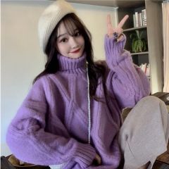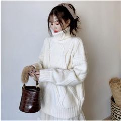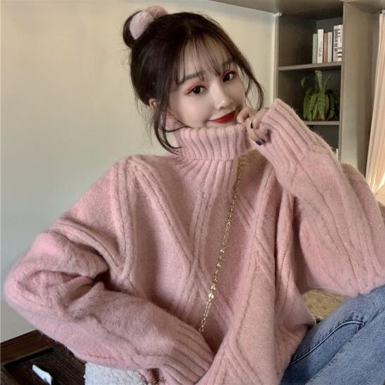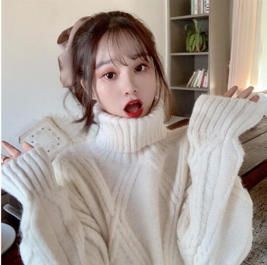 撒梵莉针织衫女百搭套头毛衣女秋冬新款2020宽松半高领毛衣女内搭韩版简约纯色长袖加厚打底衫女 燕麦色 均码