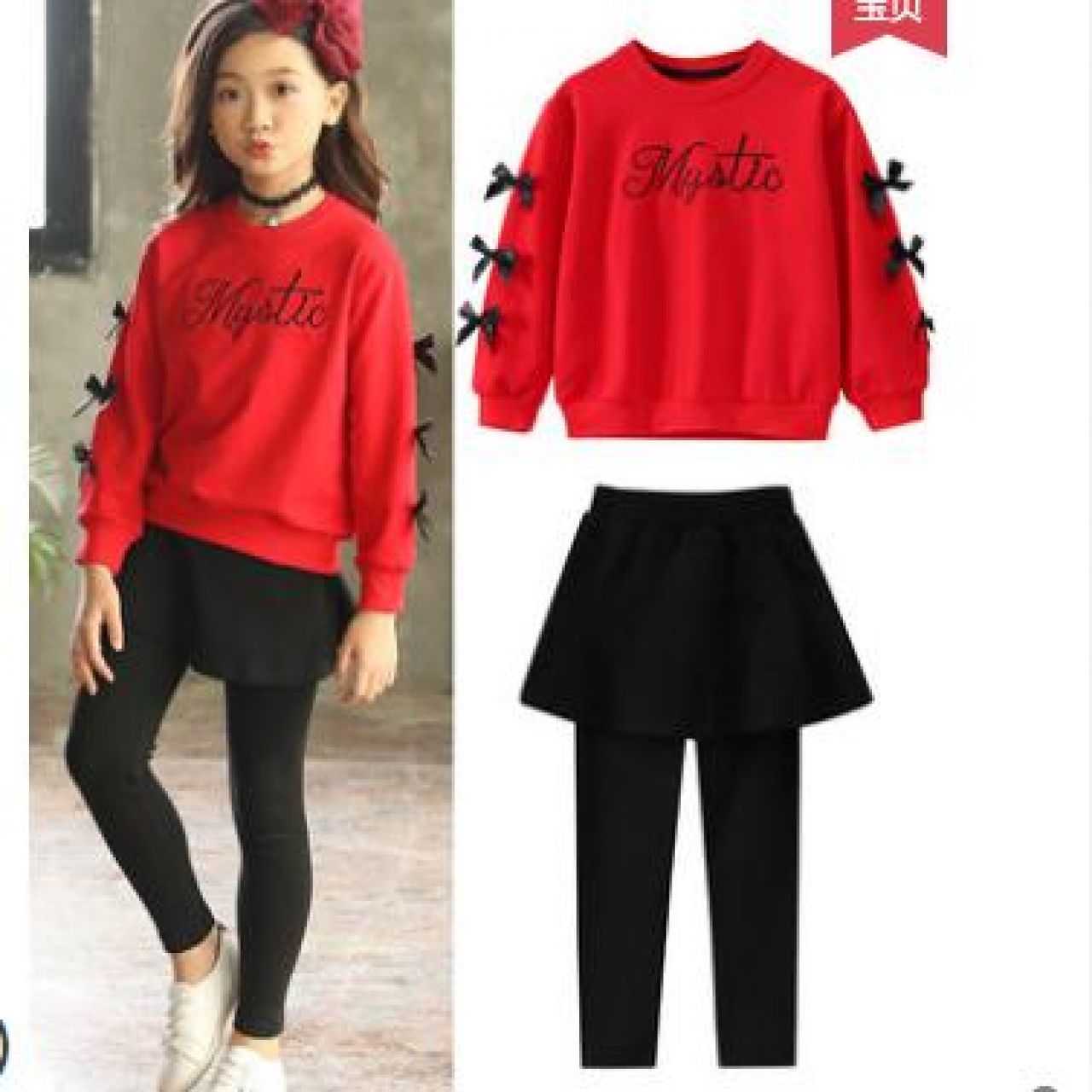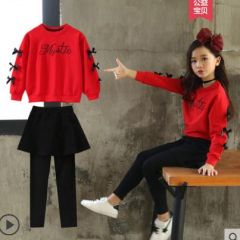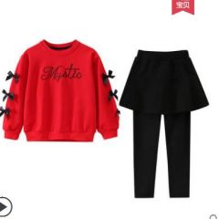 女童套装2020秋冬款儿童中大童装加绒加厚套装洋气时髦裙裤两件套