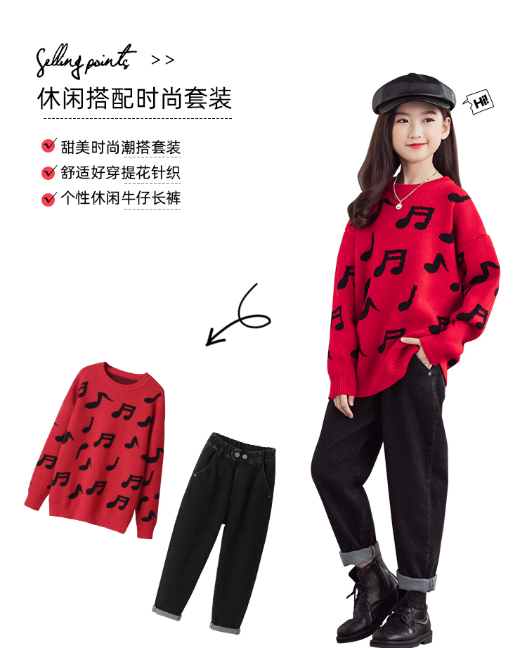 女童套装2020新款秋装网红洋气儿童女宝宝中大童毛衣牛仔裤两件套