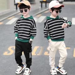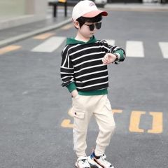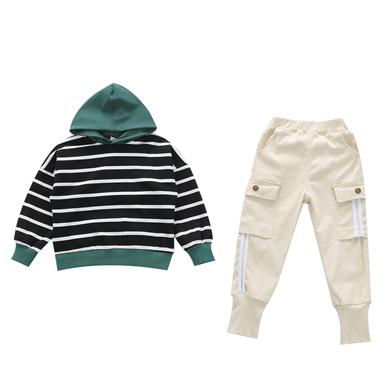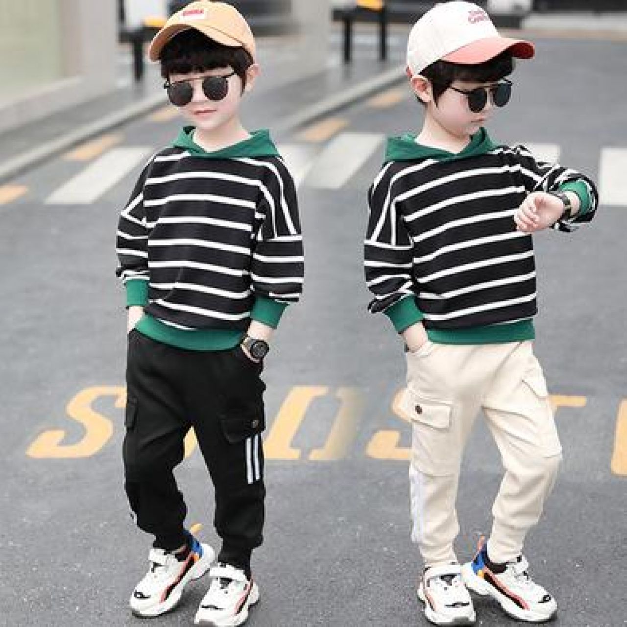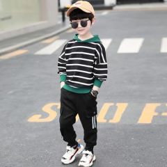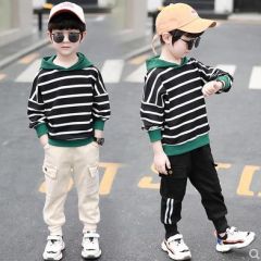 男童连帽卫衣2020春秋新款韩版洋气中大童条纹时尚简约运动套装潮