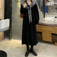 秋季新款裙子女时尚斑马纹披肩长袖连衣裙气质女神范长裙