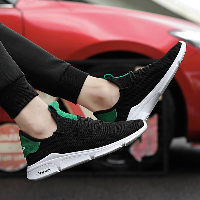 夏季男鞋潮鞋运动跑步鞋透气飞织韩版百搭网面鞋子男士休闲鞋