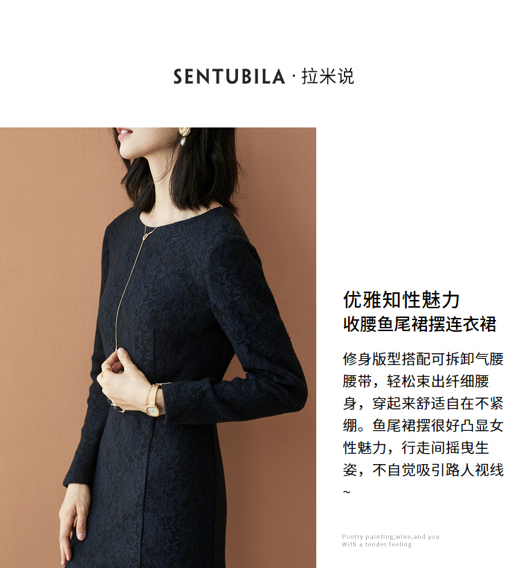 尚都比拉气质收腰显瘦鱼尾裙女装2020新款长袖中长款连衣裙女秋冬