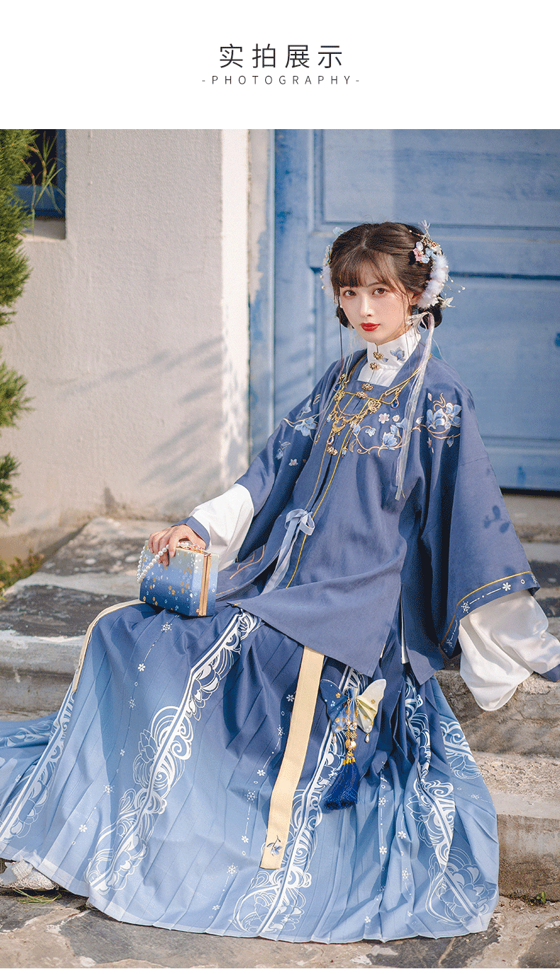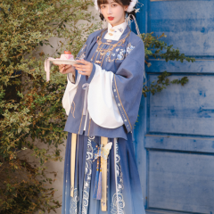 首页> 男装/ 女装/ 内衣> 特色服装> 唐装> 池夏:玉雪香 明制短衫百褶裙三件套原创改良立领汉服女全套秋冬
