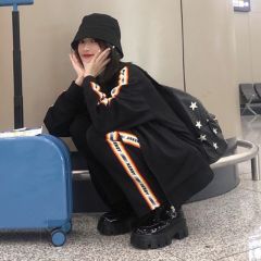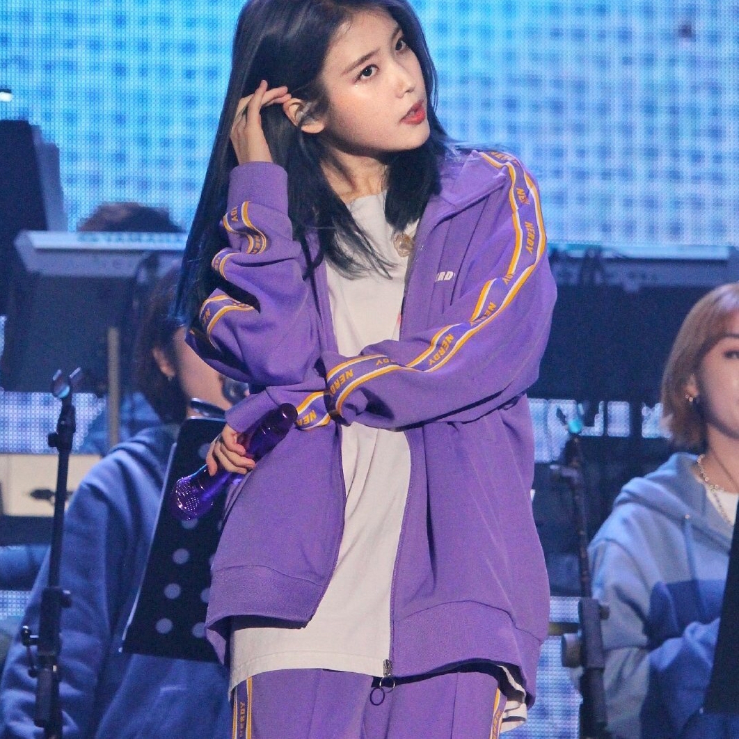 NERDY外套卫衣女韩国潮牌明星iu同款紫色串标条纹运动服情侣套装