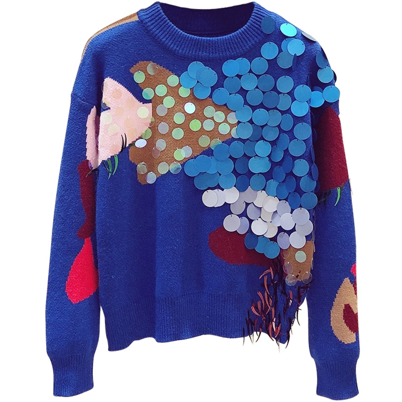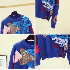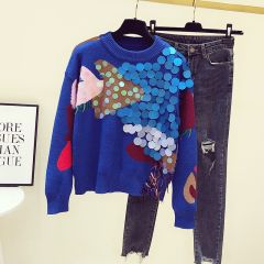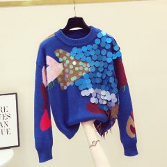 秋冬新款洋气重工亮片毛衣宽松套头针织百搭