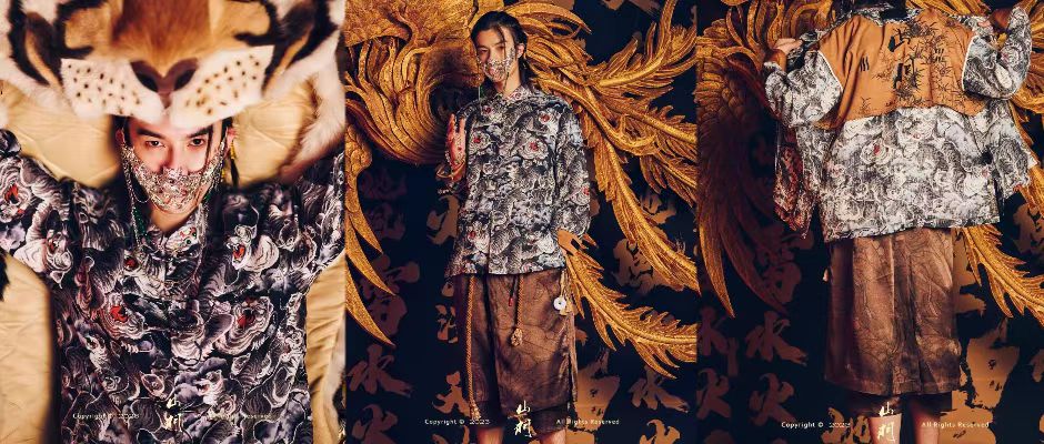 碧海潮生高端限定〓山门贰拾•黑百虎图〓中国风匠人手染亚麻唐装 黑 XS