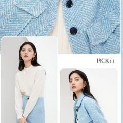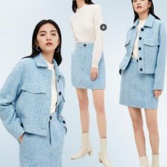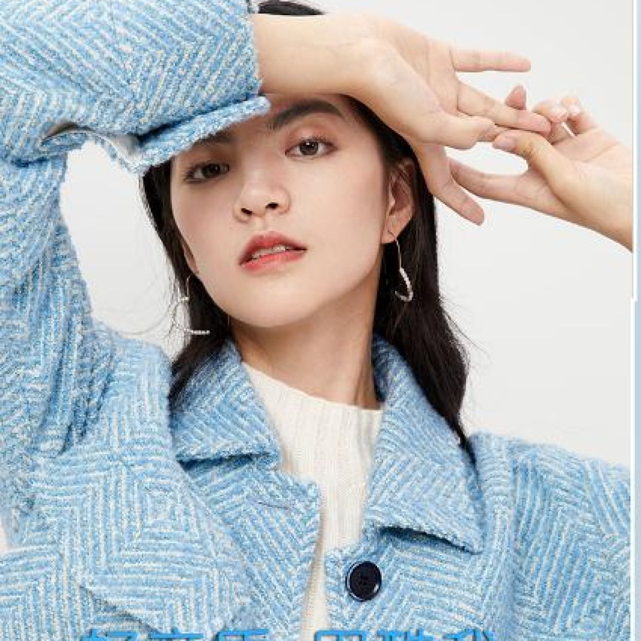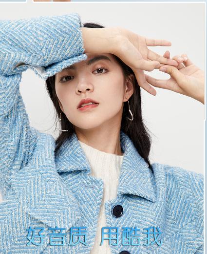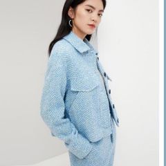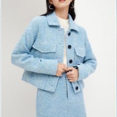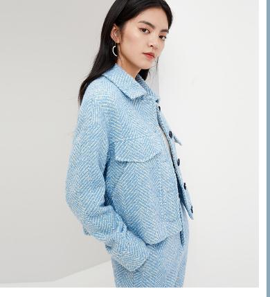 伊芙丽毛呢外套女2020年新款秋冬季短款外套工装风人字纹短外套女 双袋盖衬衫领式短夹克外套