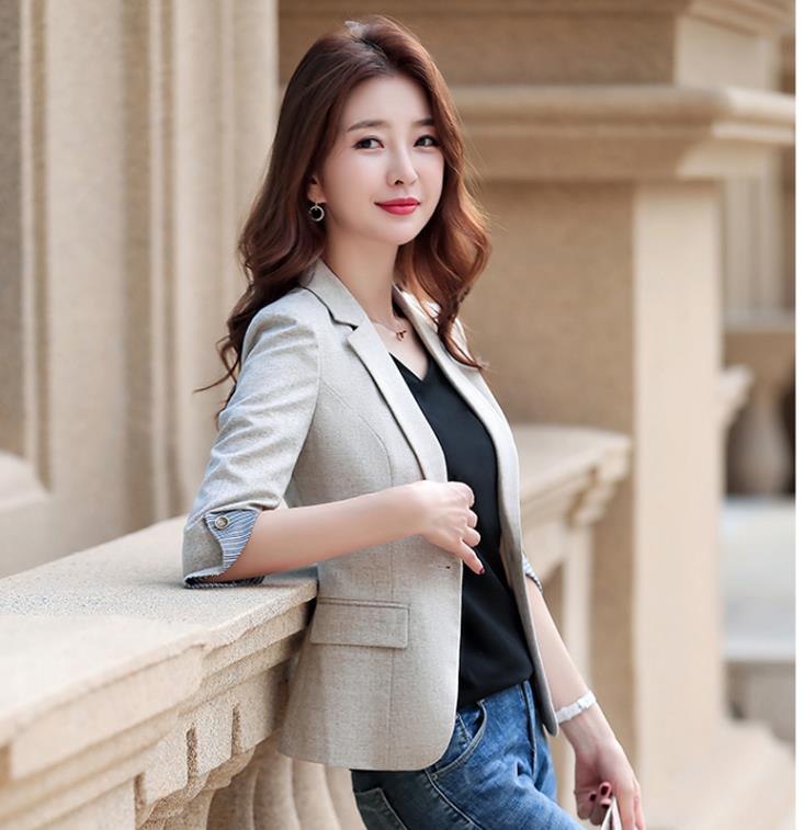七分袖时尚西装外套女韩版2020春夏修身显瘦职业气质薄新款小西服