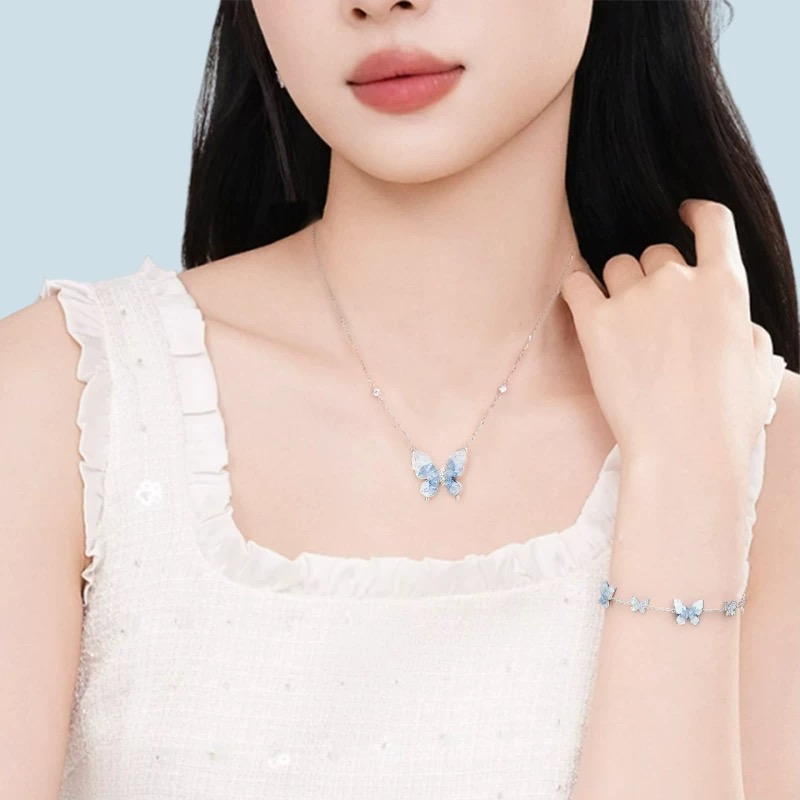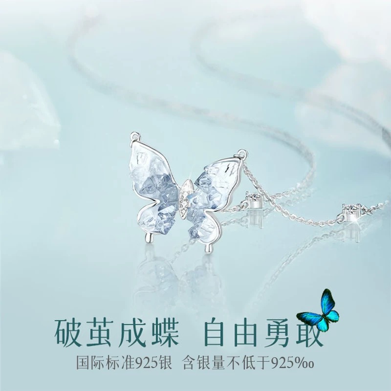 迪士尼联名项链女款高级感轻奢小众纯银配饰蓝眼泪送闺蜜生日礼物