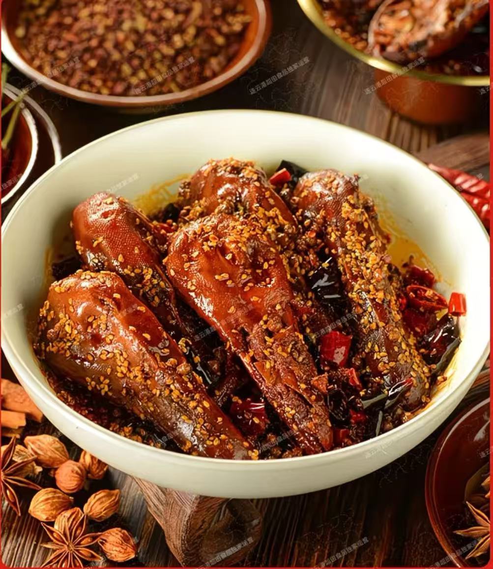 融合多种香料与烹饪工艺,形成麻、辣、香、鲜、甜等丰富口味:鸭头肉质紧实有嚼劲;富含蛋白质,维生素和矿物质,脂肪量相对较低,满足消费者对便捷饮食的需求。