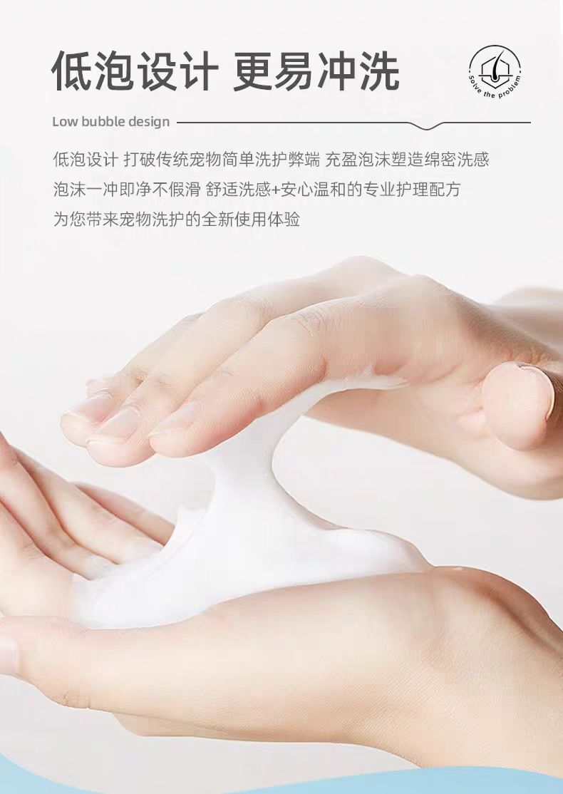 柔顺系列,特别添加的天然植物精华与护毛成分,在温和清洁的同时,能显著滋养毛发,使宠物的被毛洗后格外柔软、顺滑且有光泽,并散发清新淡雅的持久香气,呵护宠物肌肤健康。