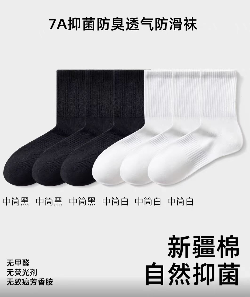 【双效守护,畅享干爽】专为男士打造的秋冬运动袜,采用高品质精梳棉结合创新抗菌纤维,形成持久防护层,从根源抑制细菌滋生,即使连续穿着也能保持足部清新无异味。袜身采用立体编织工艺,脚踝处弹性包裹不紧绷,关键部位针对性加厚处理,大大提升了袜子的耐磨性与使用寿命。简约大气的纯色设计搭配标志性螺纹口,满足青少年日常搭配需求,从球场奔跑至课堂学习,让双脚在干爽舒适中自在呼吸,轻松应对各种场合。