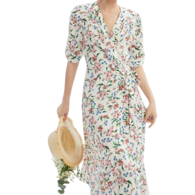 连衣裙女2022夏季新款女装圆领碎花高级感桑蚕丝真丝气质长裙 花色
