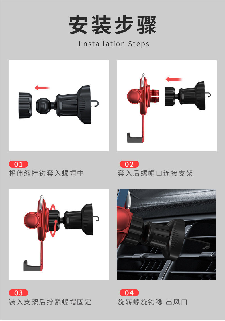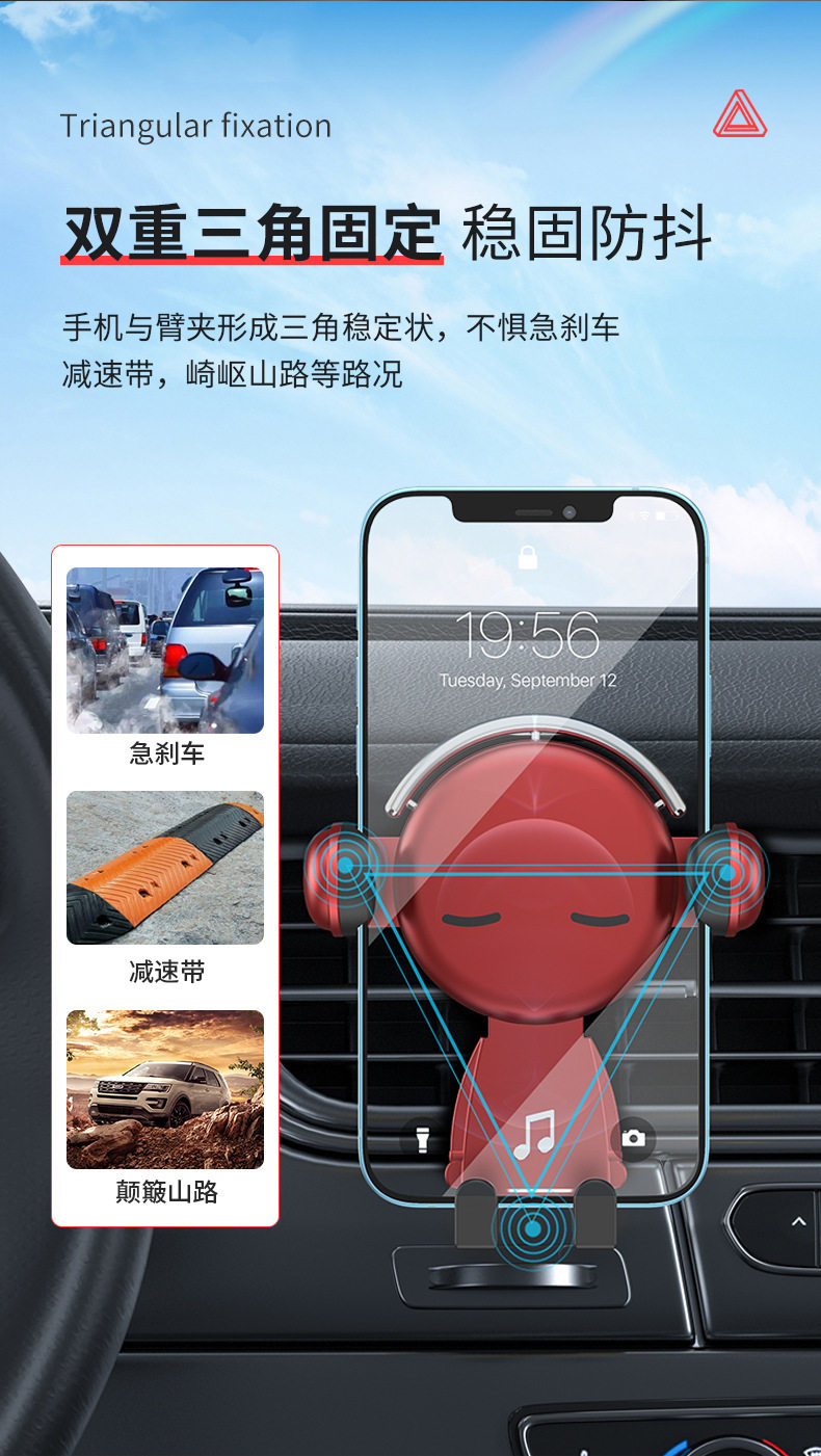 车载手机支架出风口三角稳车载手机支架出风口三角稳固防抖钩汽车导航重力支撑架金属倒钩汽车导航重力支撑架