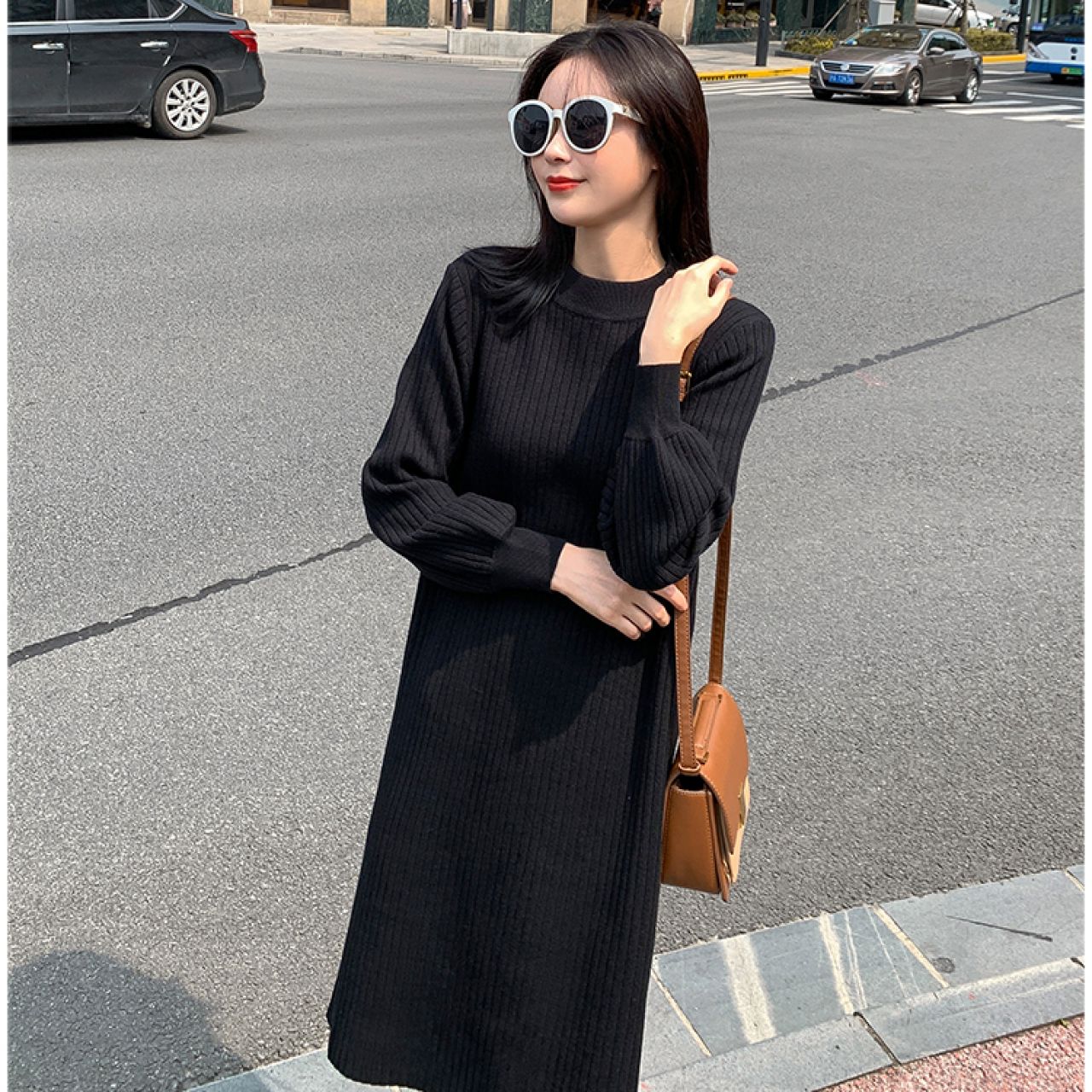 秋装2020年新款女长袖连衣裙衬衫式酒红色收腰显瘦气质过膝长裙子
