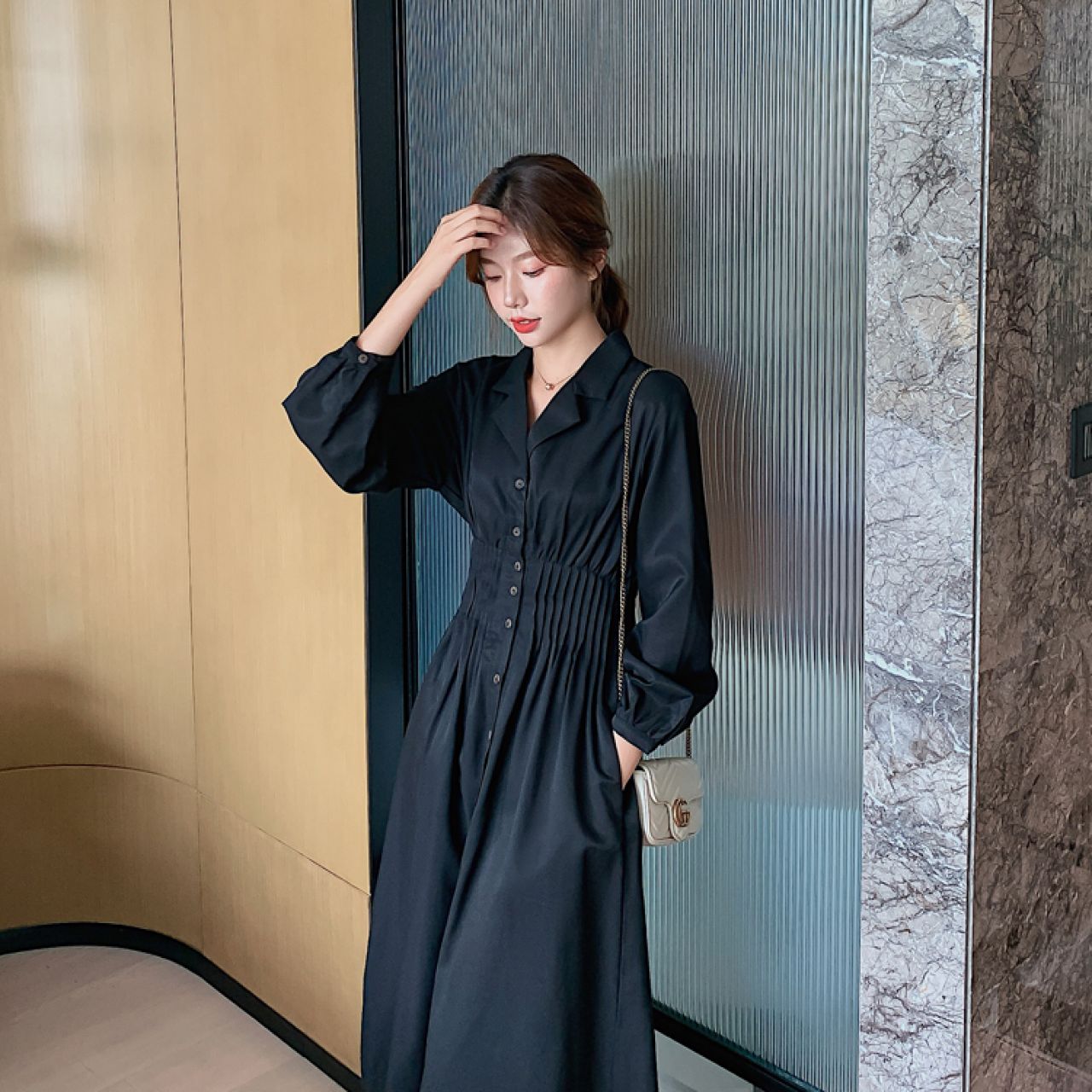 小个子穿搭过膝长裙秋冬针织打底连衣裙长款气质内搭外穿毛衣裙