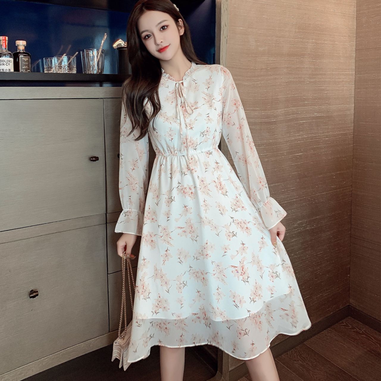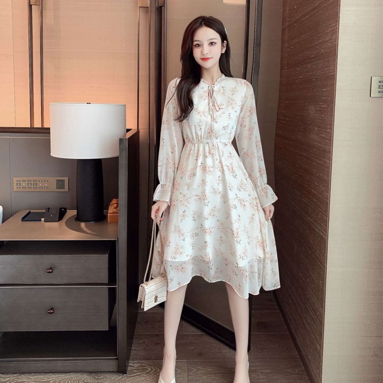短袖中长款2022年夏季套头宽松腰通勤连衣裙气质淑女