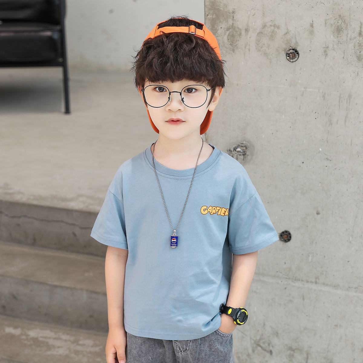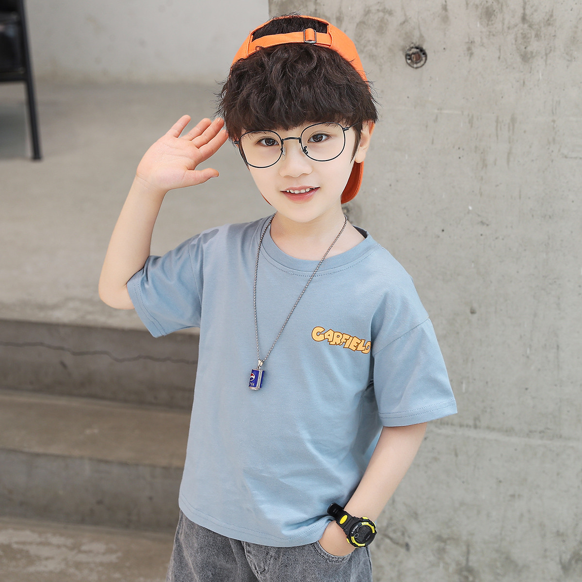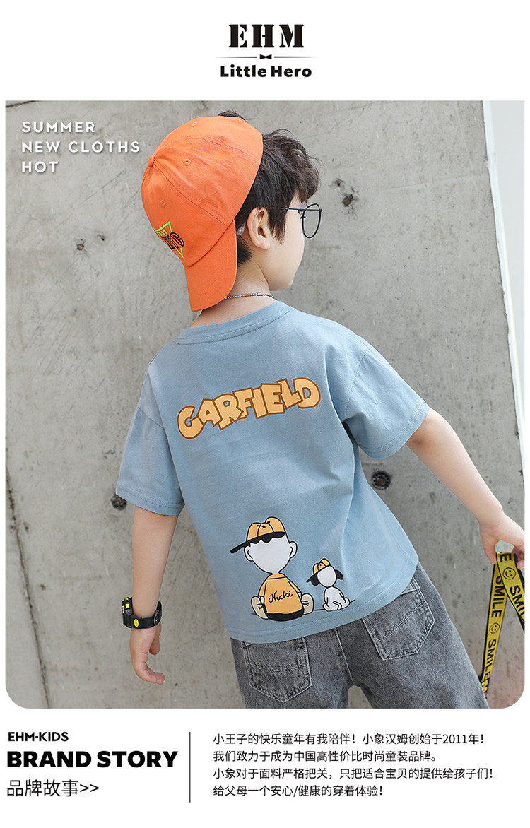 幼悠 男童休闲上衣2021夏季新款儿童印花圆领T恤简约宽松童装短袖