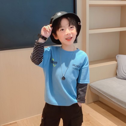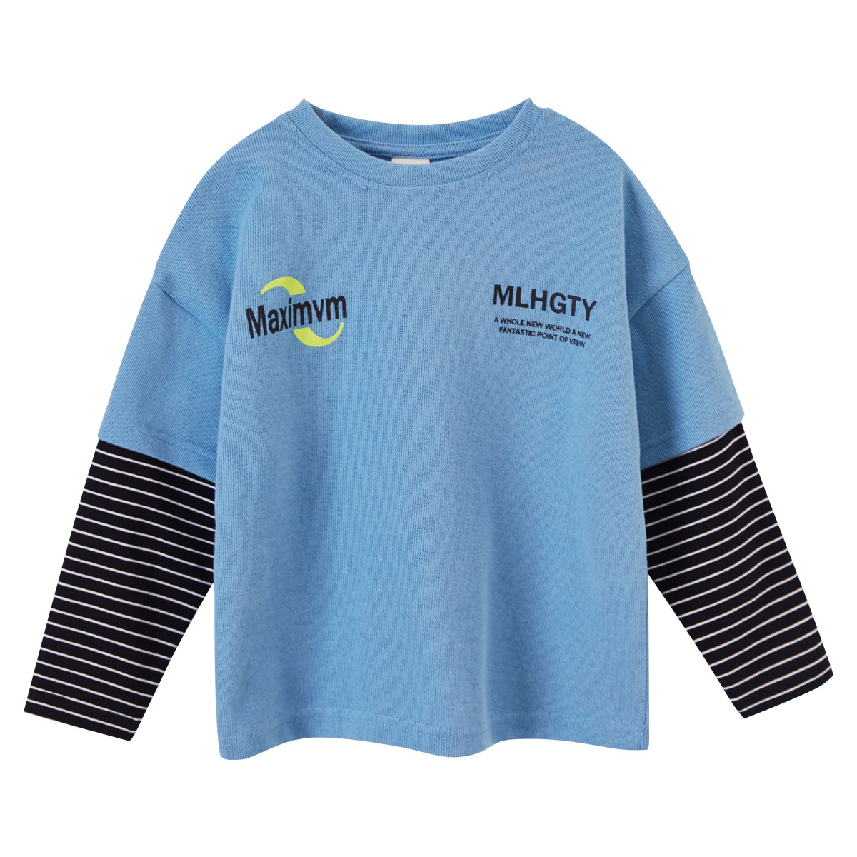 男童T恤春装2021新款韩版宽松洋气假两件中大童春秋
