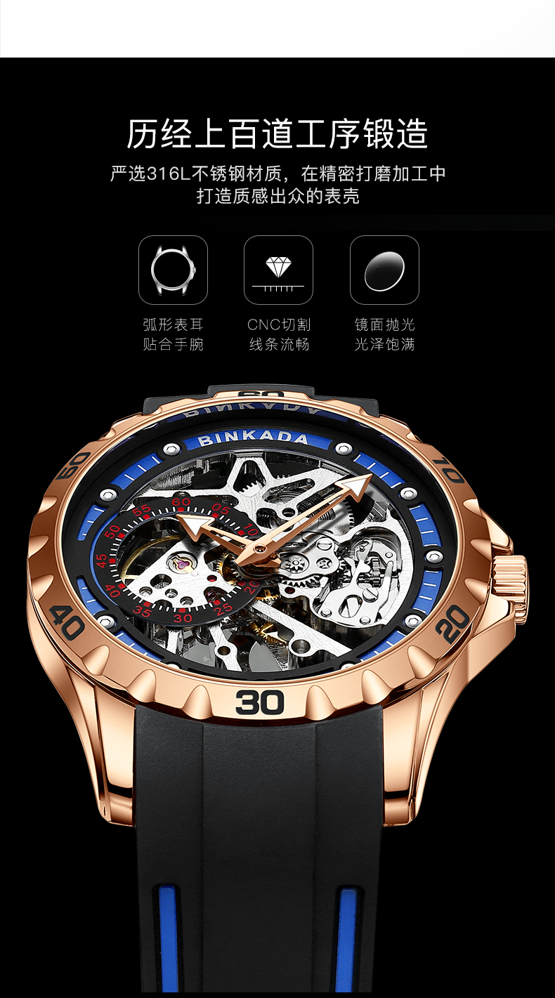 阿玛妮新款十大品牌手表男士全自动机械表防水镂空潮名表正品男表