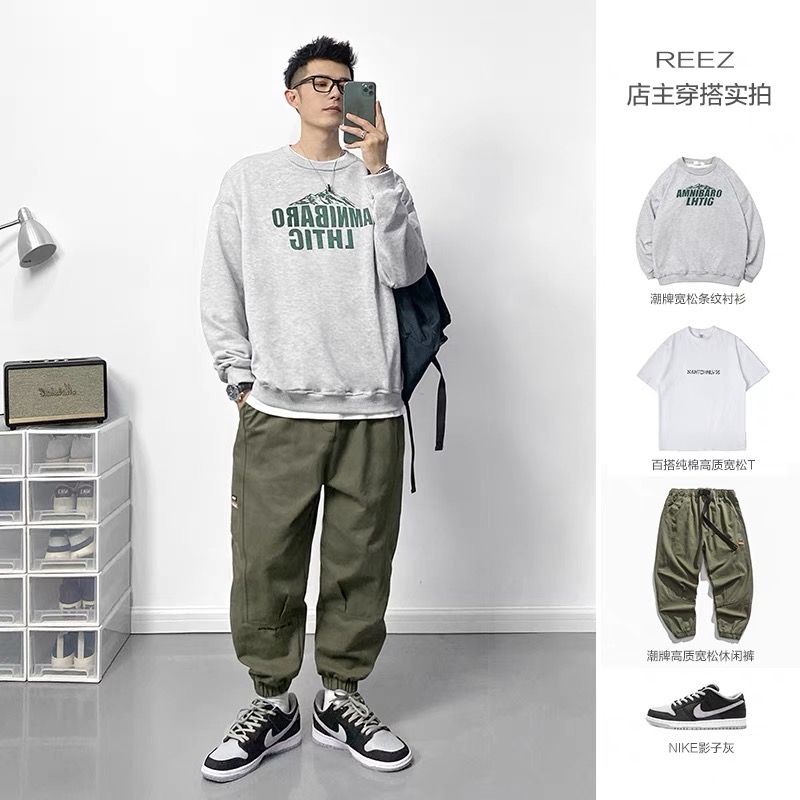 印花圆领卫衣男套头夏季薄款 黑色 XL