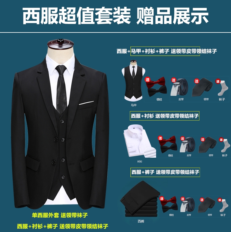 花花公子西服套装男士职业正装韩版修身一套帅气青年休闲西装外套