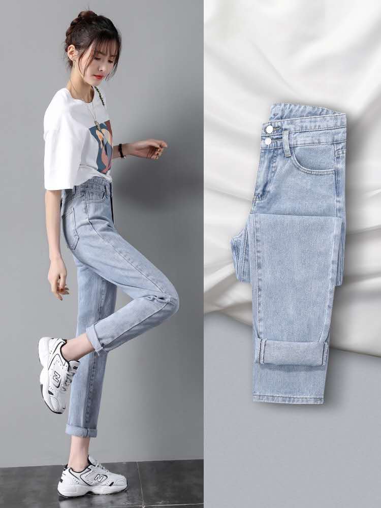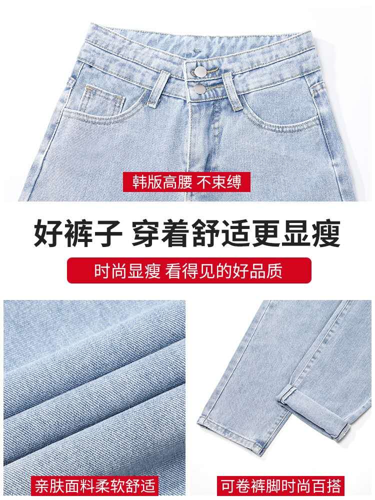 哈伦牛仔裤女夏季春秋春装2021年新款直筒宽松高腰显瘦萝卜女裤子