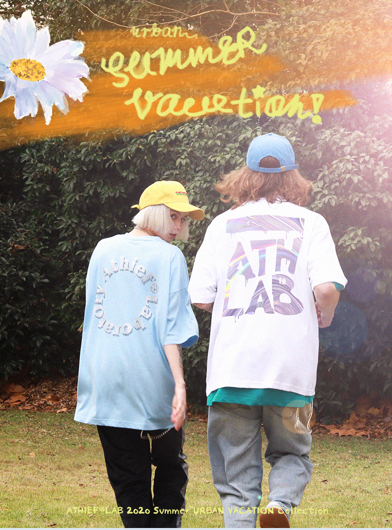 Athief国潮短袖T恤男装宽松休闲衣服半袖上衣镭射字母2021夏季款