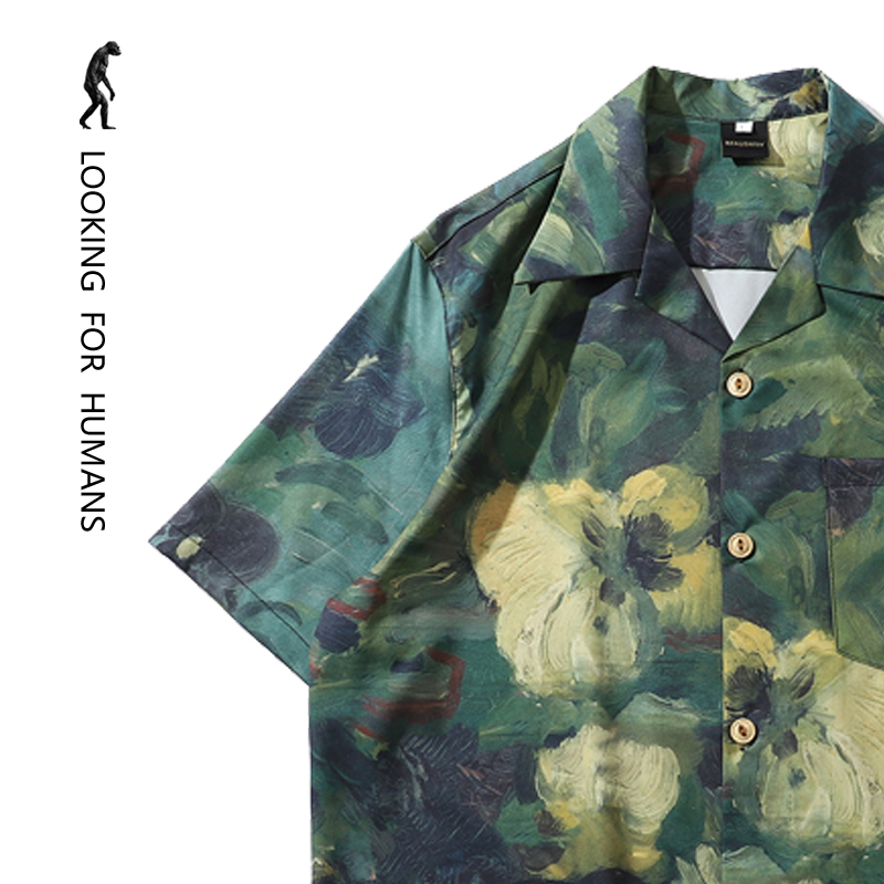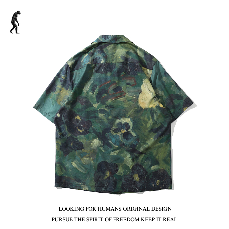 「寻找人类」艺术家油画 复古情侣装宽松休闲衬衫包邮