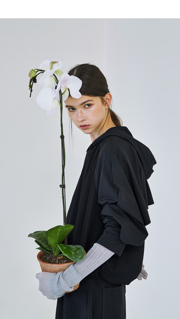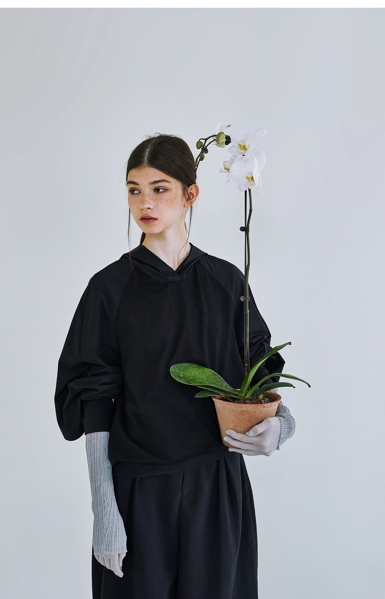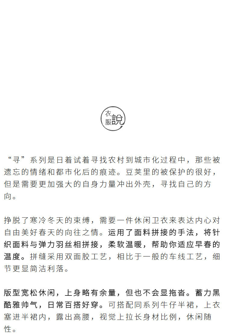 【种子说】原创设计女装2021春新款 宽松短款拼接连帽卫衣上衣