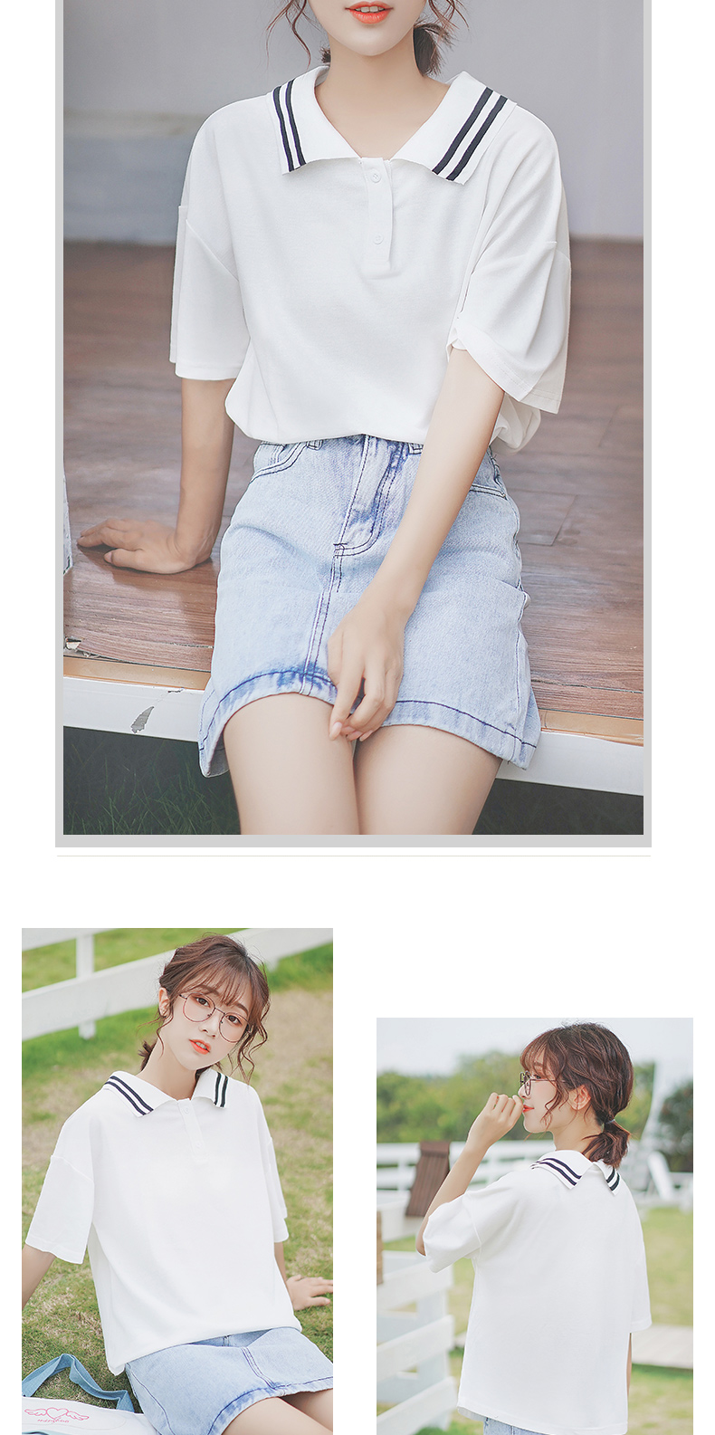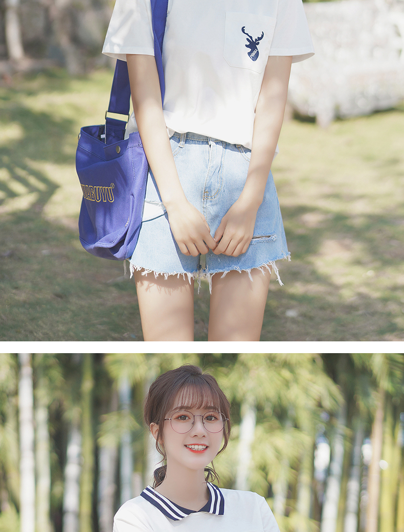 帛卡琪2020新款宽松纯棉刺绣少女polo衫翻领上衣ins潮短袖t恤女夏