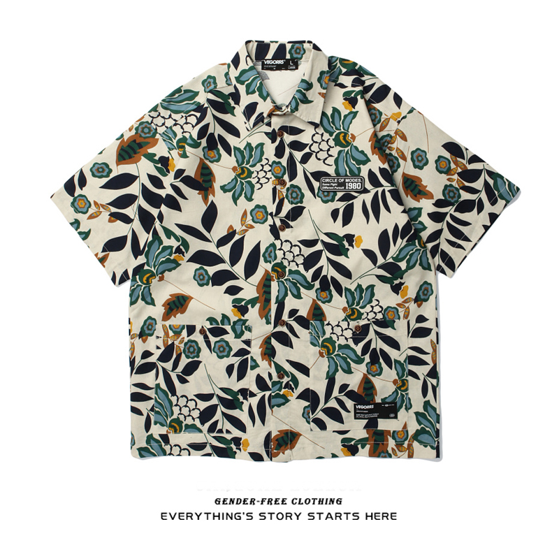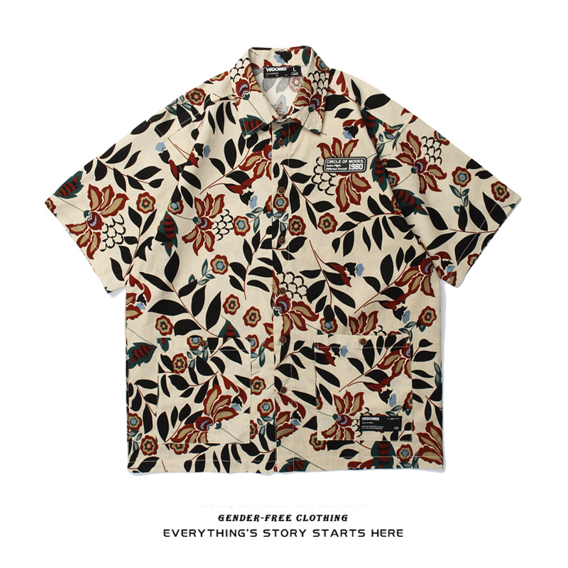 ZOROHOM日系复古碎花衬衫男女宽松潮流休闲港味夏装半袖衬衣