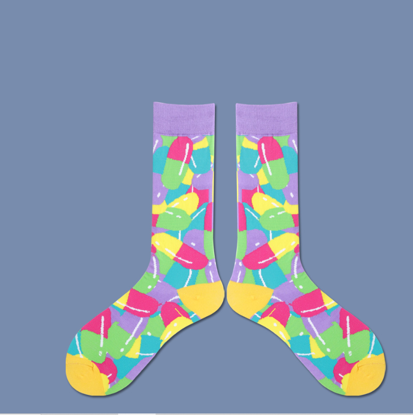 欧美风街头潮袜滑板袜涂鸦艺术长筒袜ins潮女袜秋季