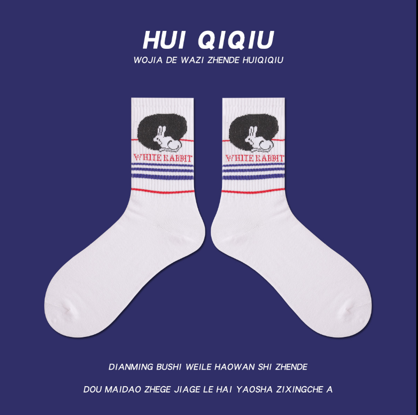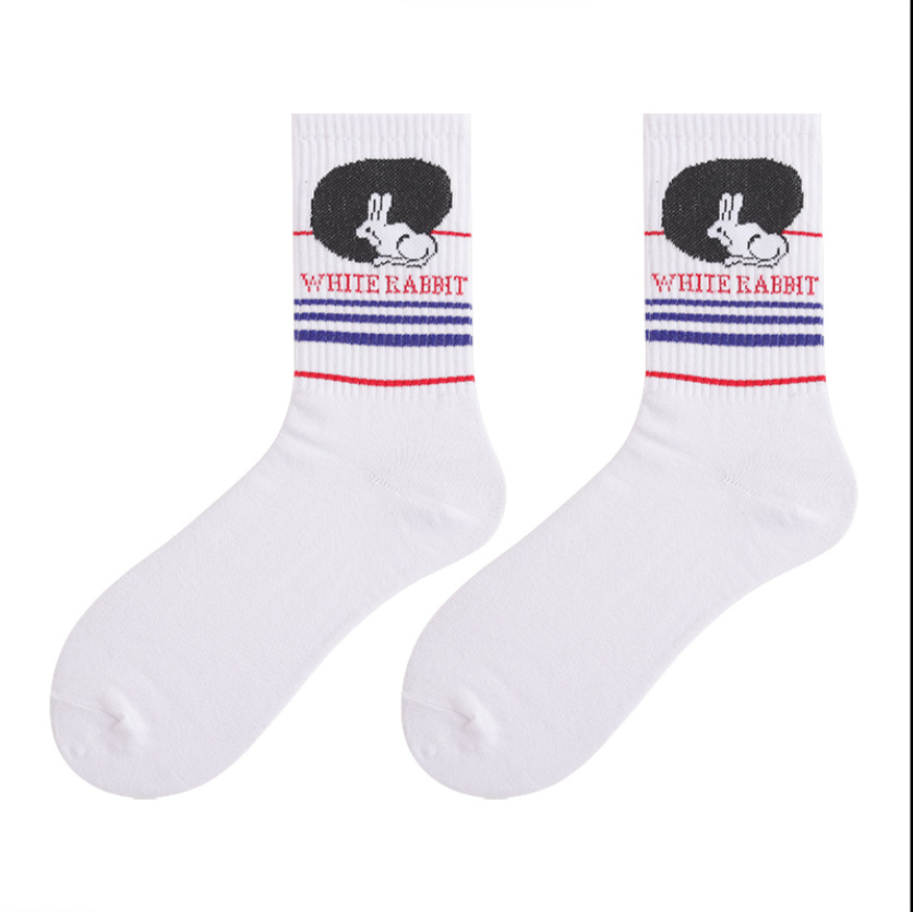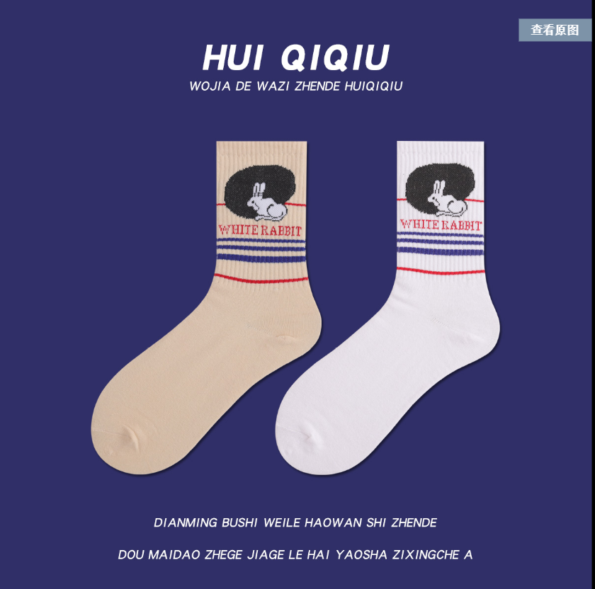 可爱大白兔ins棉袜 中筒袜男女同款