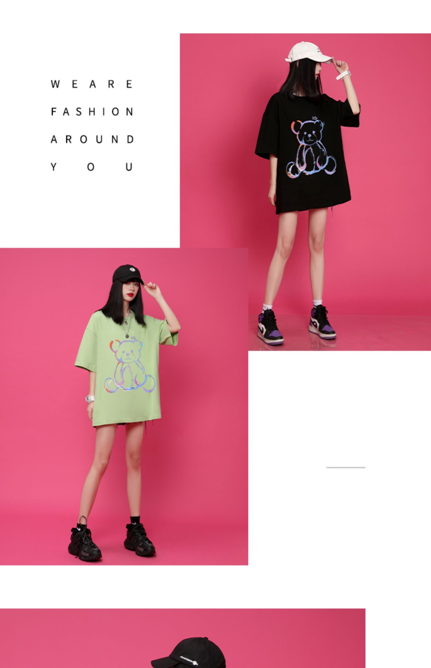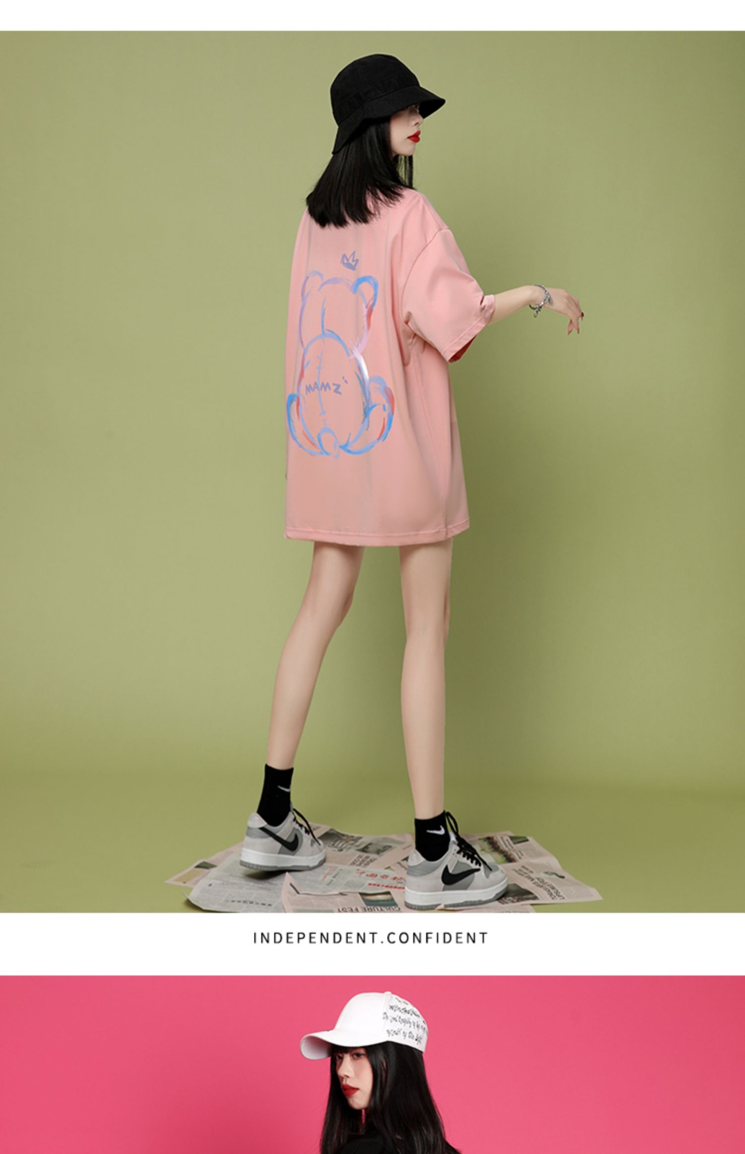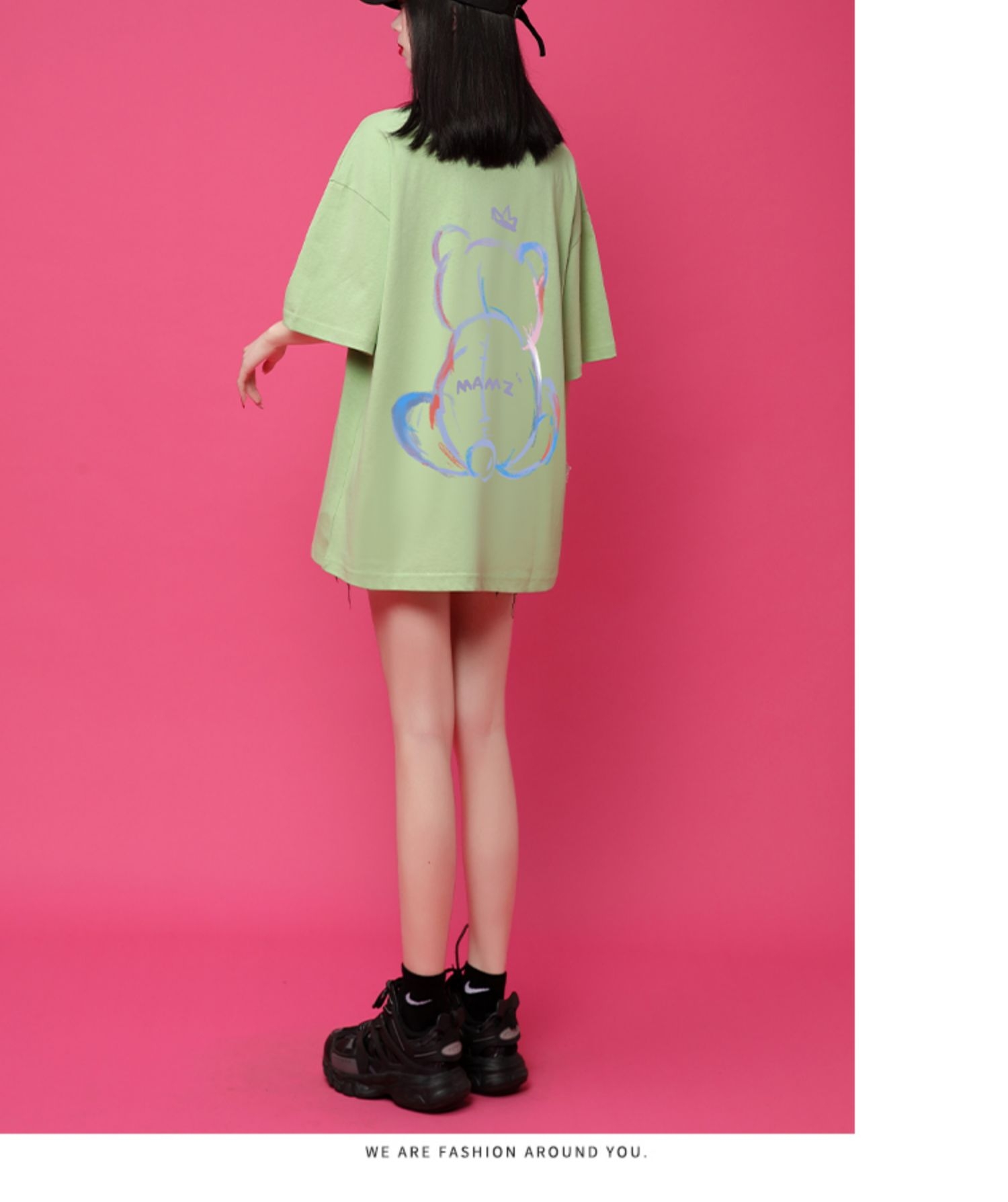 小熊t恤女短袖设计感春夏女潮2021年新款夏季宽松中长款纯棉小众上衣