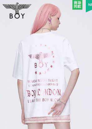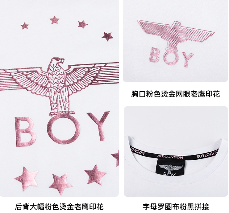 boy london21夏大幅粉色烫金老鹰印花情侣短袖T恤 s