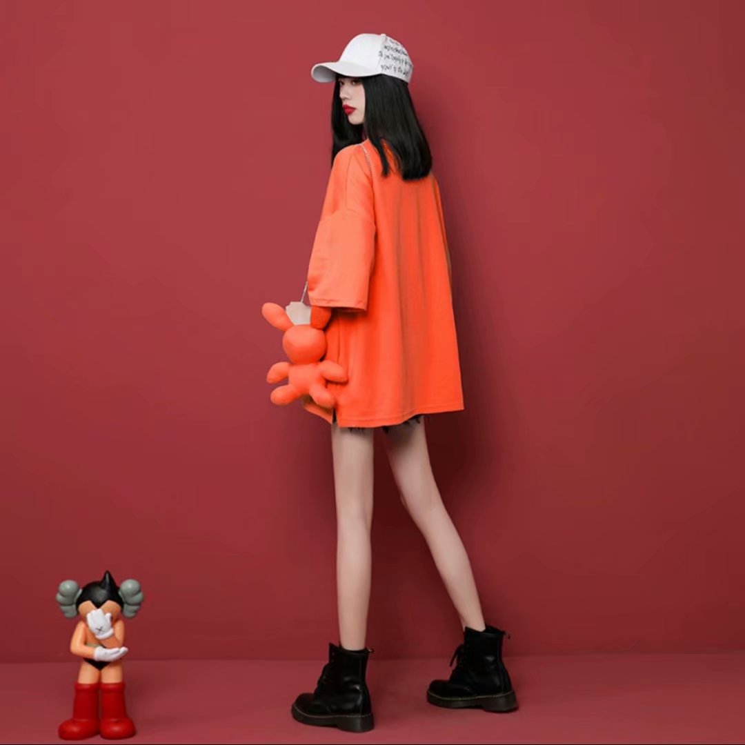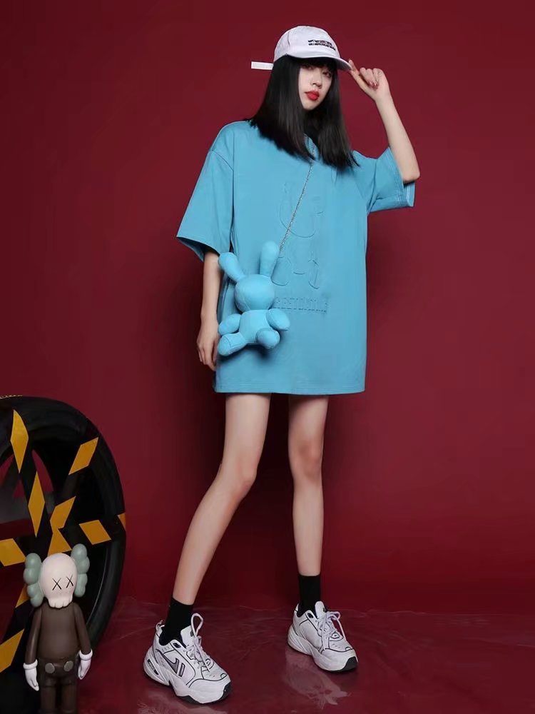 潮牌短袖T恤女2021夏季新款ins潮宽松设计感小众女装上衣配送小兔