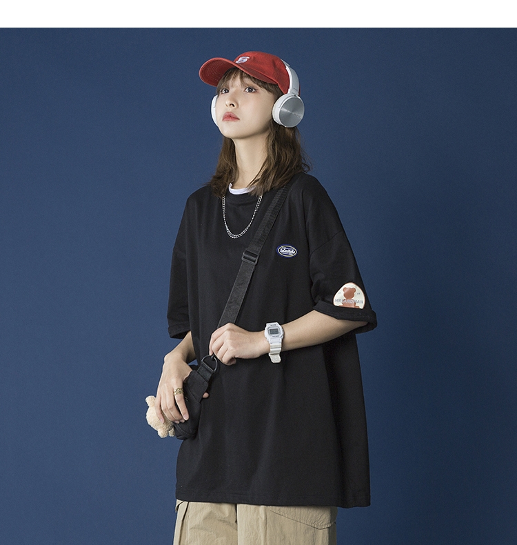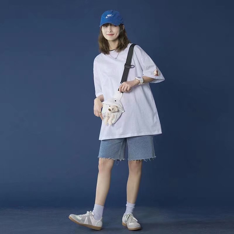 大码T恤女ins潮韩版夏季百搭bf可爱小熊炸街港风短袖2021新款