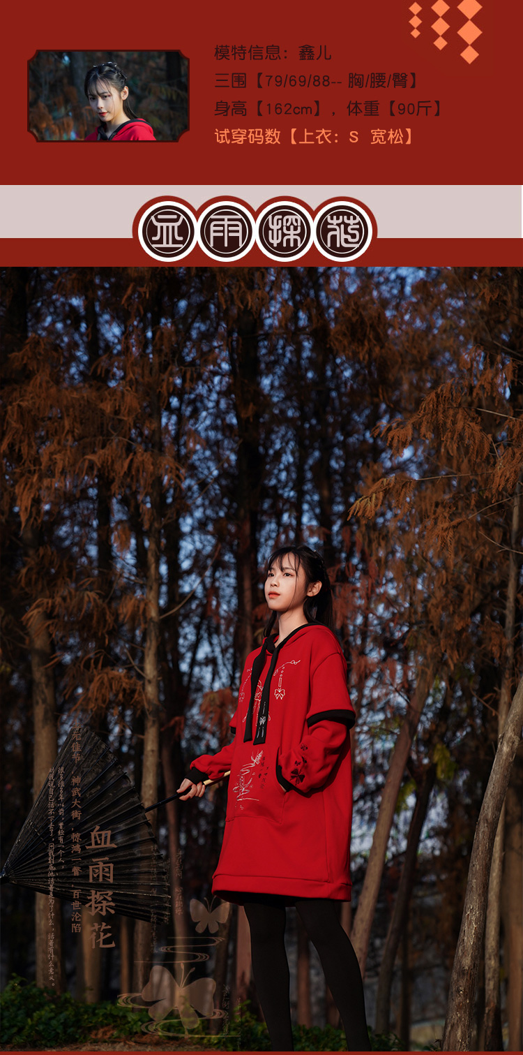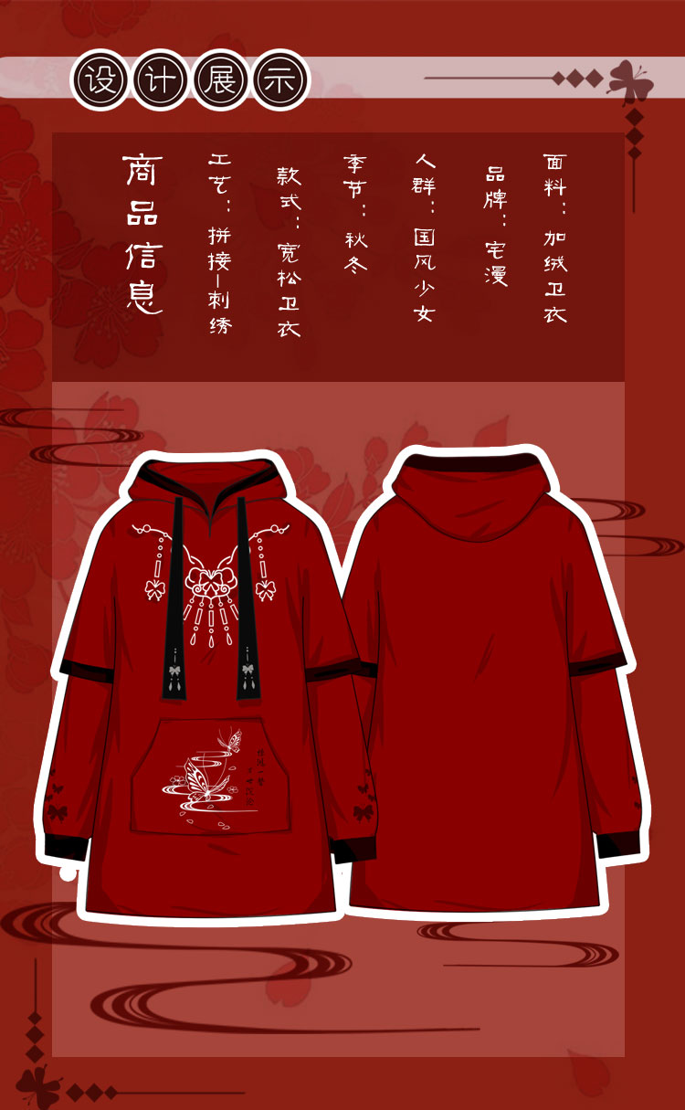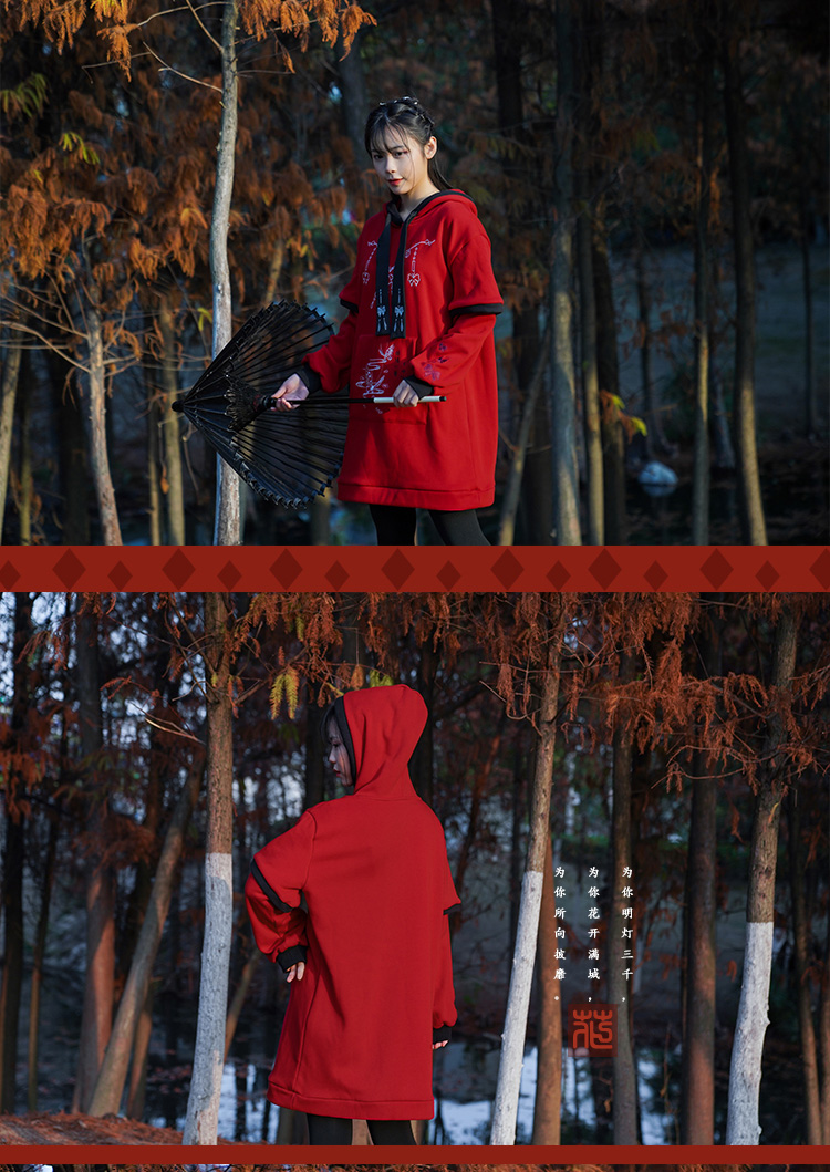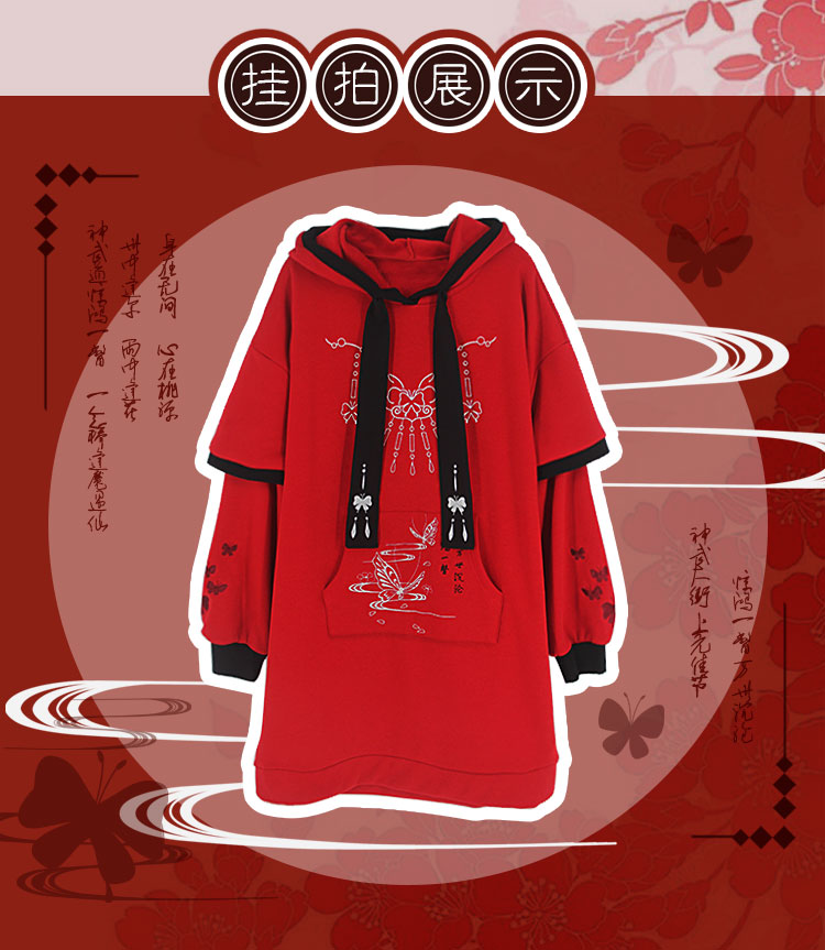 【天官赐福--花城】刺绣加绒卫衣 中长款刺绣连帽 红色秋冬百搭 均码