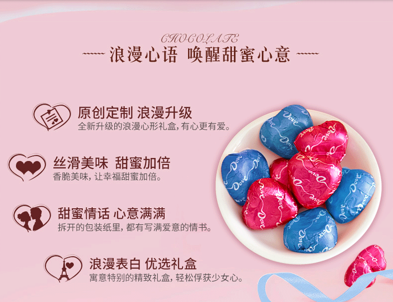 德芙心语98g巧克力夹心混合丝滑心形礼盒装送女友情侣表白礼盒