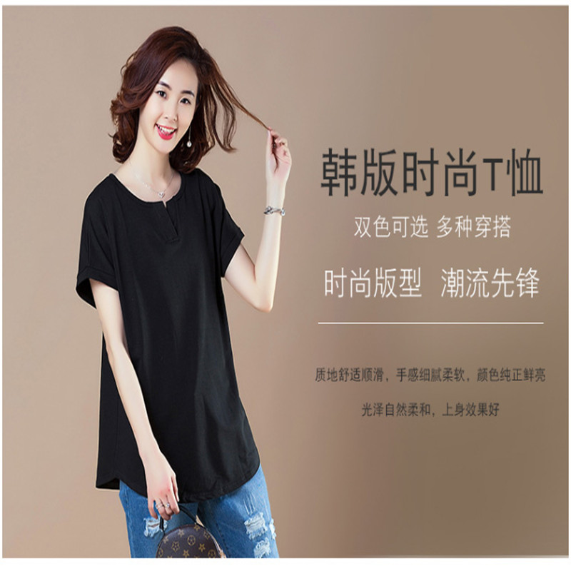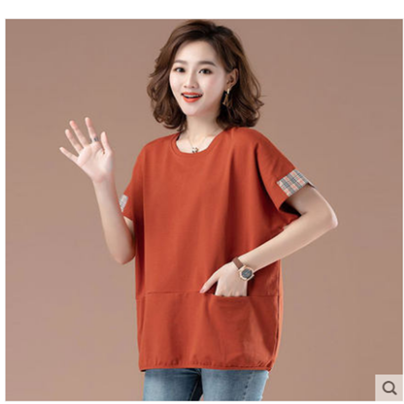 2021夏季纯色棉t恤女纯棉短袖宽松圆领半袖T恤上衣舒适