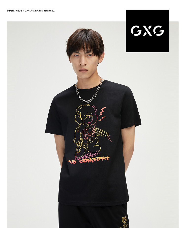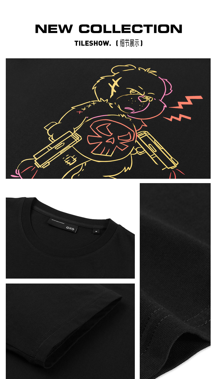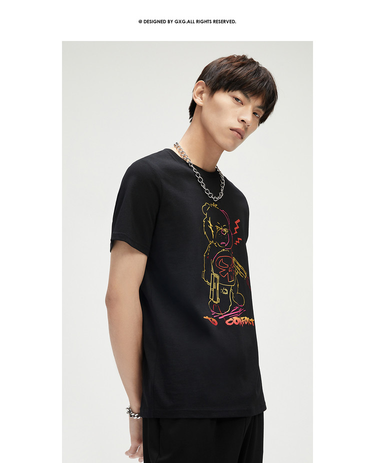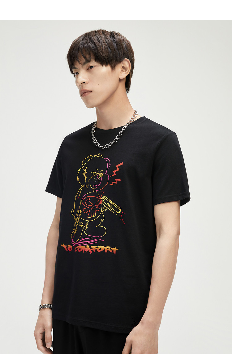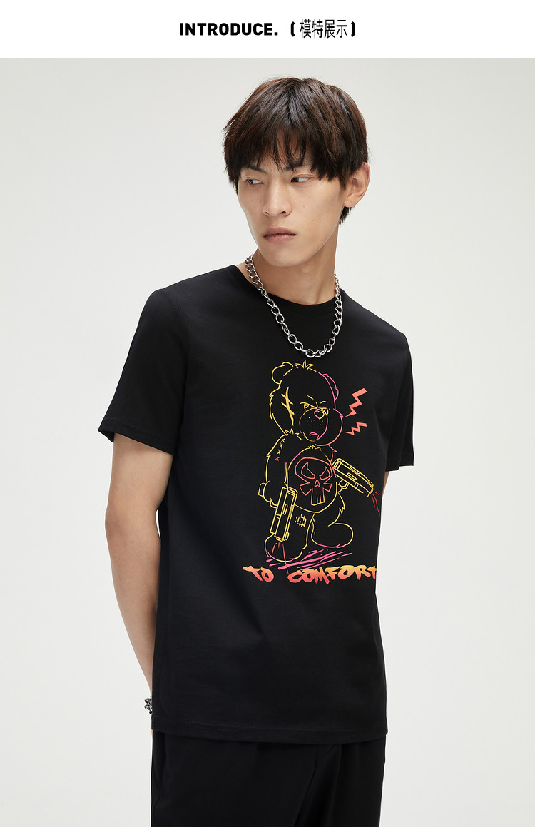 2021夏季新品潮流男士小熊印花休闲时尚男士T恤短袖