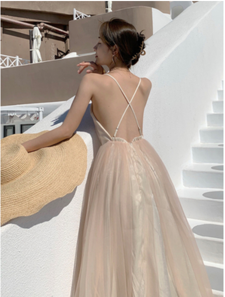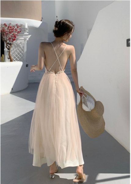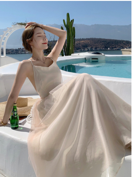三亚沙滩裙女巴厘岛旅游拍照穿搭吊带露背连衣裙海边度假长裙超仙
